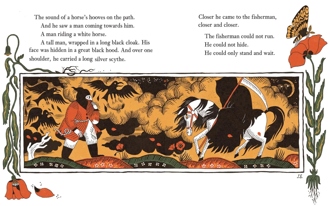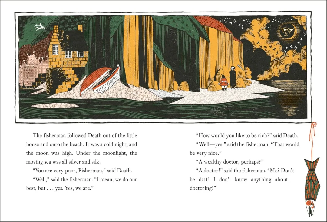 以小说《临别清单》获得水石书奖的英国作家莎莉‧妮柯丝,童年失怙,成年后曾在日本红十字会医院工作,使得她对生命有深刻的观察。她重新诠释《死神教父》,并由曾为皮克斯及迪斯尼绘图的西班牙画家Júlia Sardà 以复古画风绘制插画,让这个经典的暗黑道德寓言更增神秘色彩。