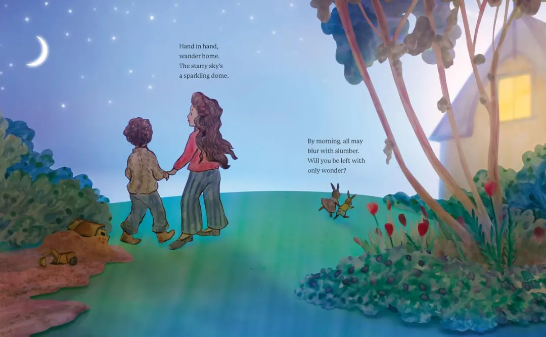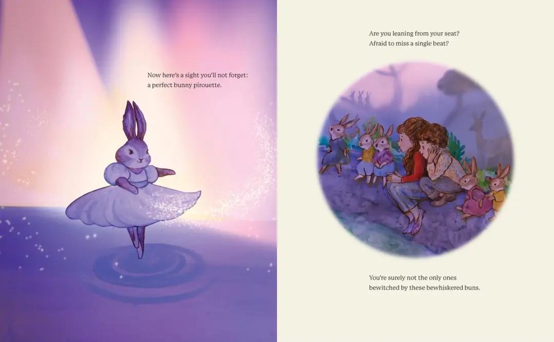 加拿大纸艺家Elly MacKay通过在微型舞台中搭建多层彩绘剪纸,再经过打光和拍摄,让画面呈现出独特的立体感。在这本绘本里,她用这样的手法将古典芭蕾的浪漫感与兔子的灵动姿态完美融合,色彩绚丽的画面精准展现出芭蕾舞的优雅,为故事增添了强烈的视觉感染力。