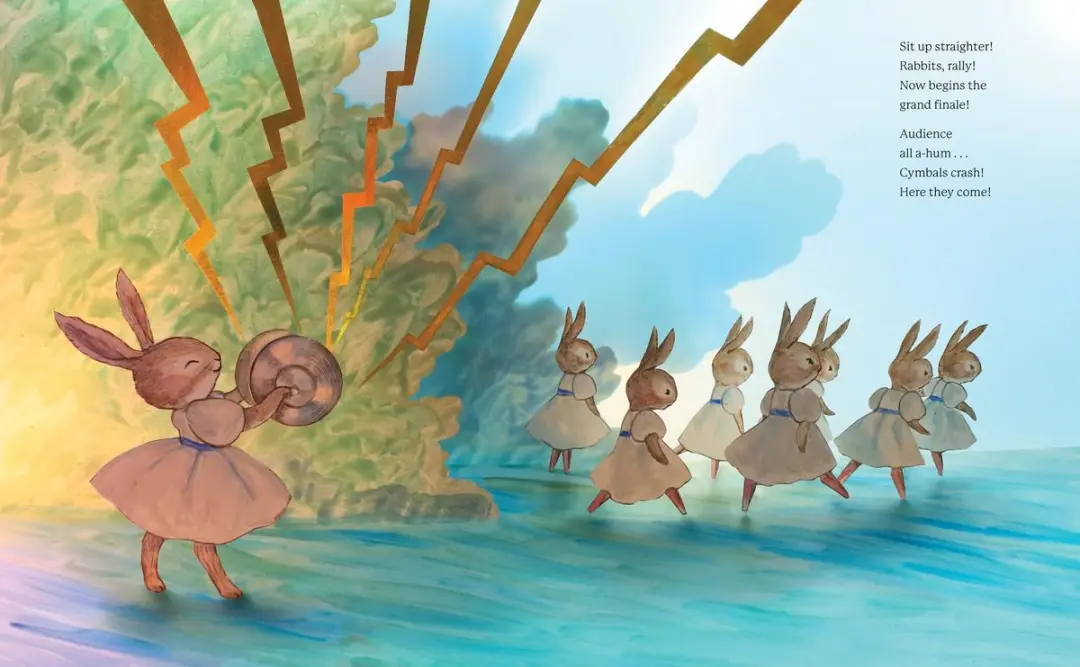 一对兄妹意外闯入一片绚丽的森林,在这里一群兔子邀请他们前往一个 “宏伟的舞厅” 观看兔子芭蕾舞表演。兄妹俩在身着各色华丽服饰的兔子观众中就座,全神贯注地欣赏着舞者们的表演 —— 这些兔子舞者有的穿着紧身上衣和马裤,有的身着飘逸长裙,伴着灵动的韵律在舞台上轻盈跳跃、旋转。中场休息时,他们还能享用生菜林茨糕、胡萝卜果汁等充满童趣的特色点心。到了第二幕,表演比第一幕更为精彩,最后所有长耳朵兔子舞者集体登台,呈现了一场令人热血沸腾的盛大终场表演。
