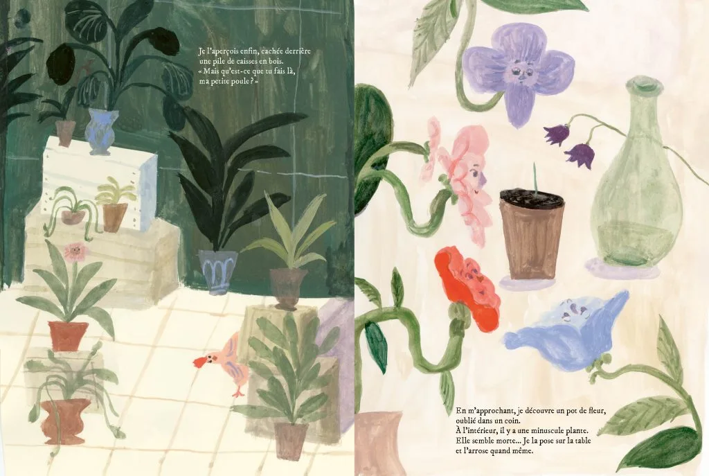 热爱植物的朋友 Willow 和 Aspen,以及他们忠诚的小鸡 Eulalia,在温室一个被遗忘的角落发现了一株神秘的幼苗。他们无法在植物图鉴中找到它,便根据一首诗里的角色,给它取名为 “Raisin”(葡萄干)。