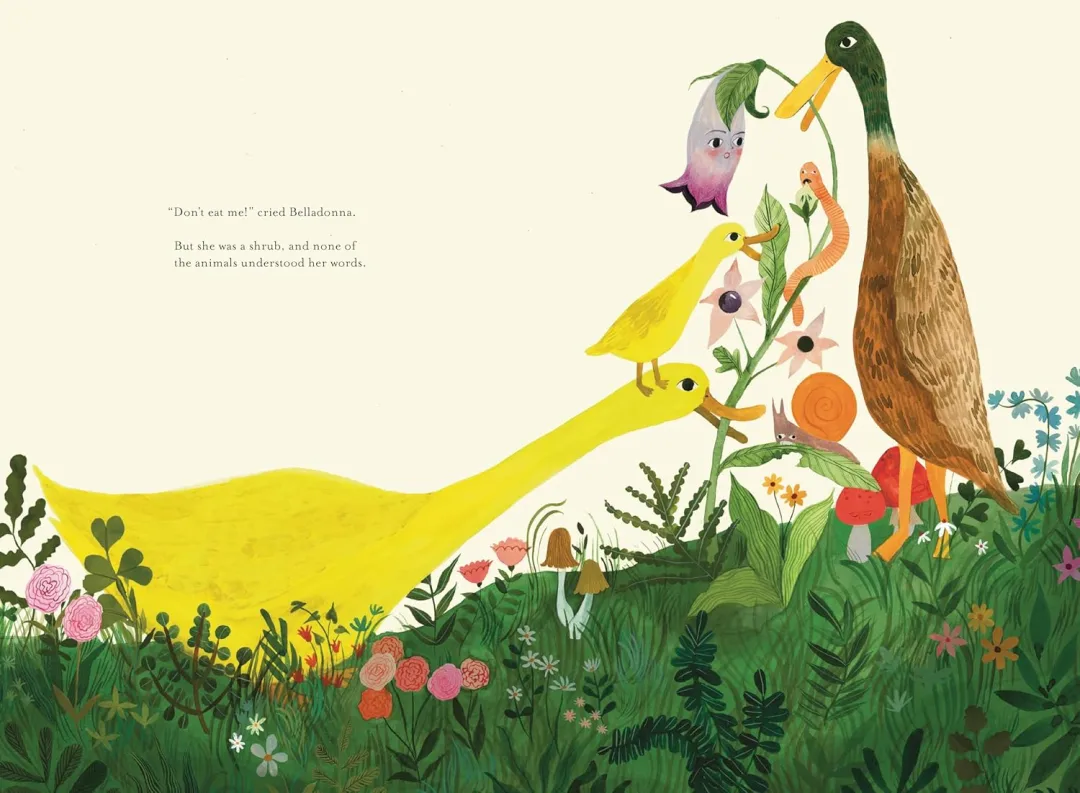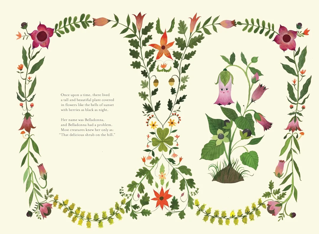 一本充满创意与自然智慧的精装绘本,它以拟人化的视角,讲述了一株名叫颠茄(Belladonna)的植物,在 “被啃食” 的生存危机中,学会自我保护与互助的独特故事,既充满童趣,又暗藏对自然法则的温柔解读。