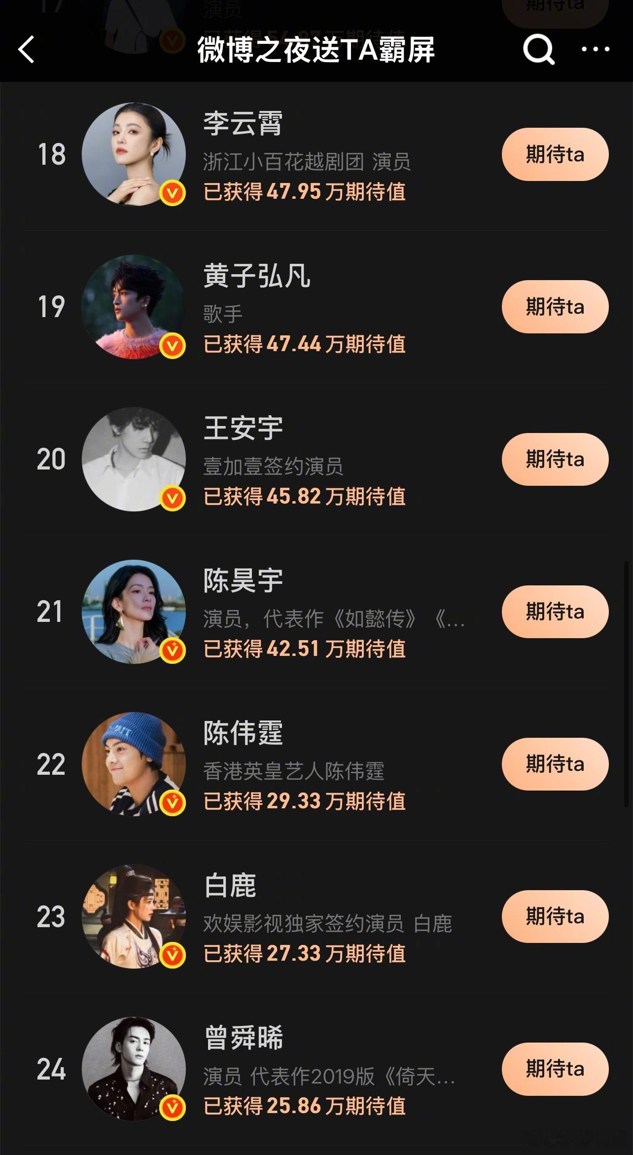 微博之夜继抢座之后又来了霸屏投票现在TOP10是肖战、邓为、王一博、刘宇、时代少年团、汪苏泷、十个勤天、杨幂、丁禹兮、陈丽君