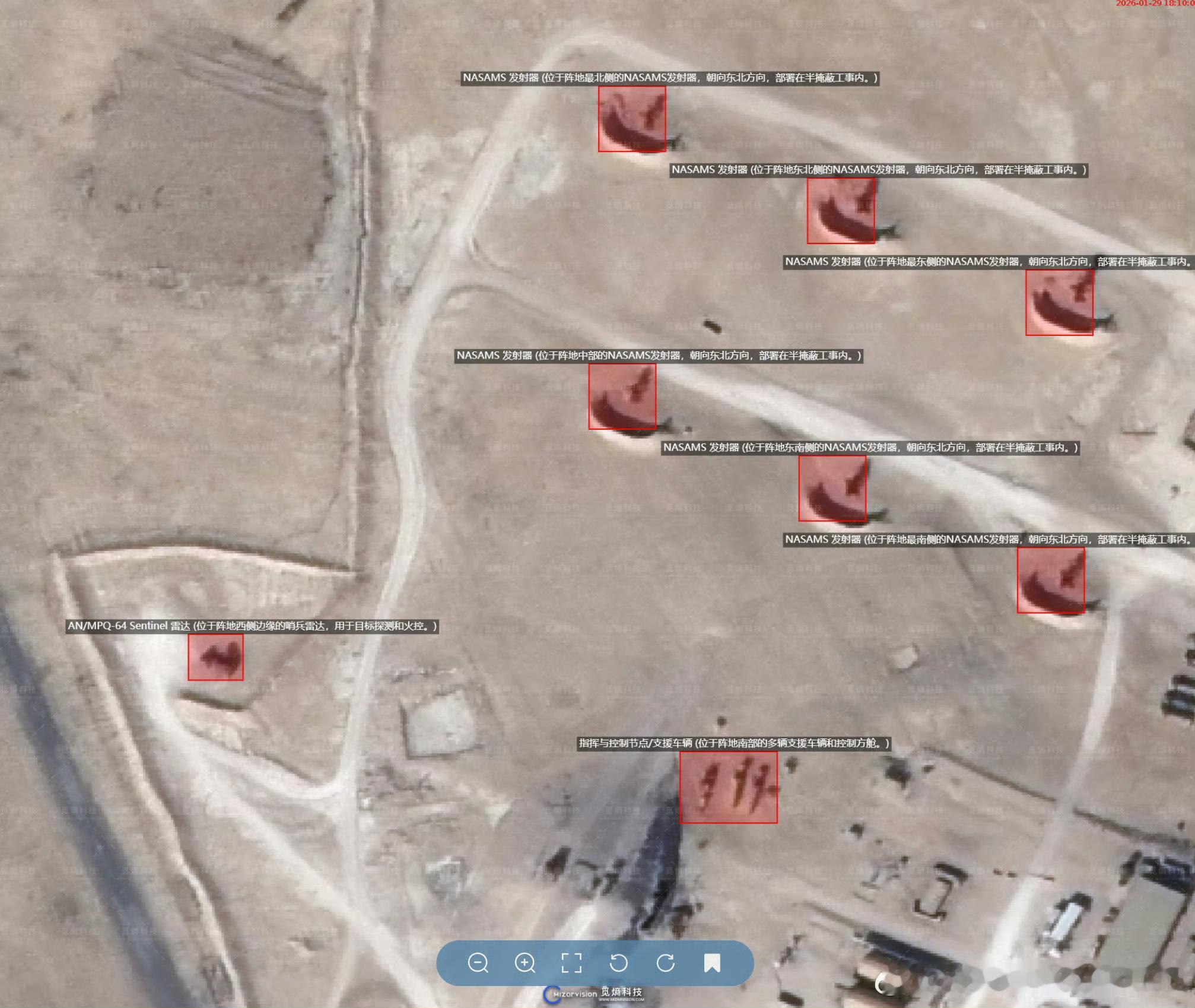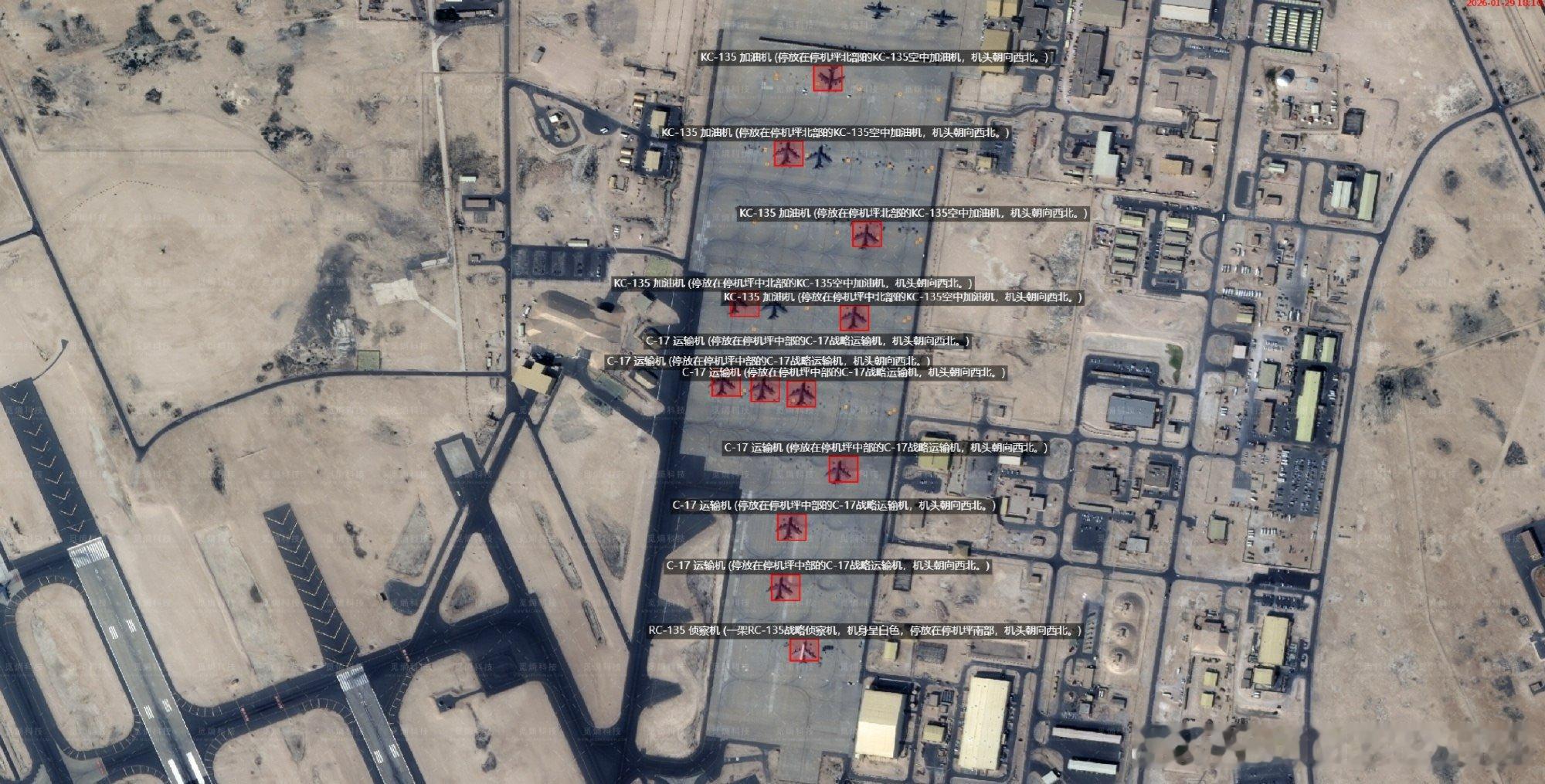 东大民营卫星公司公布美国中东军事资产高清卫星图,还特别标注型号和用途