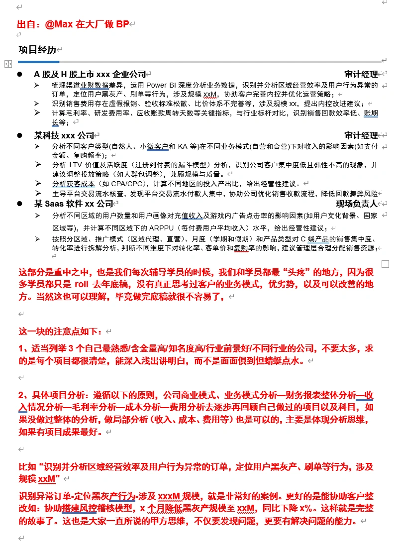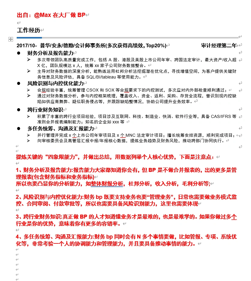 价值60w的简历!!从审计转财务bp的简历攻略