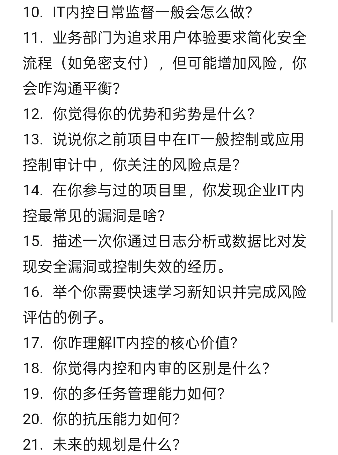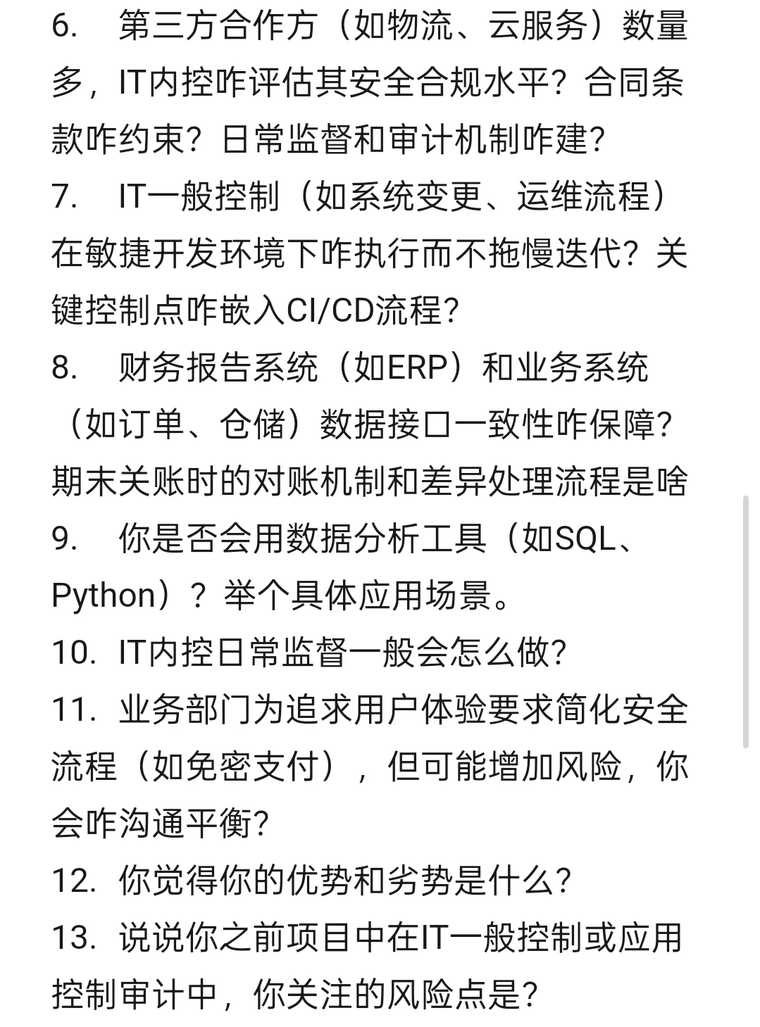 13. 说说你之前项目中在IT一般控制或应用控制审计中,你关注的风险点是?