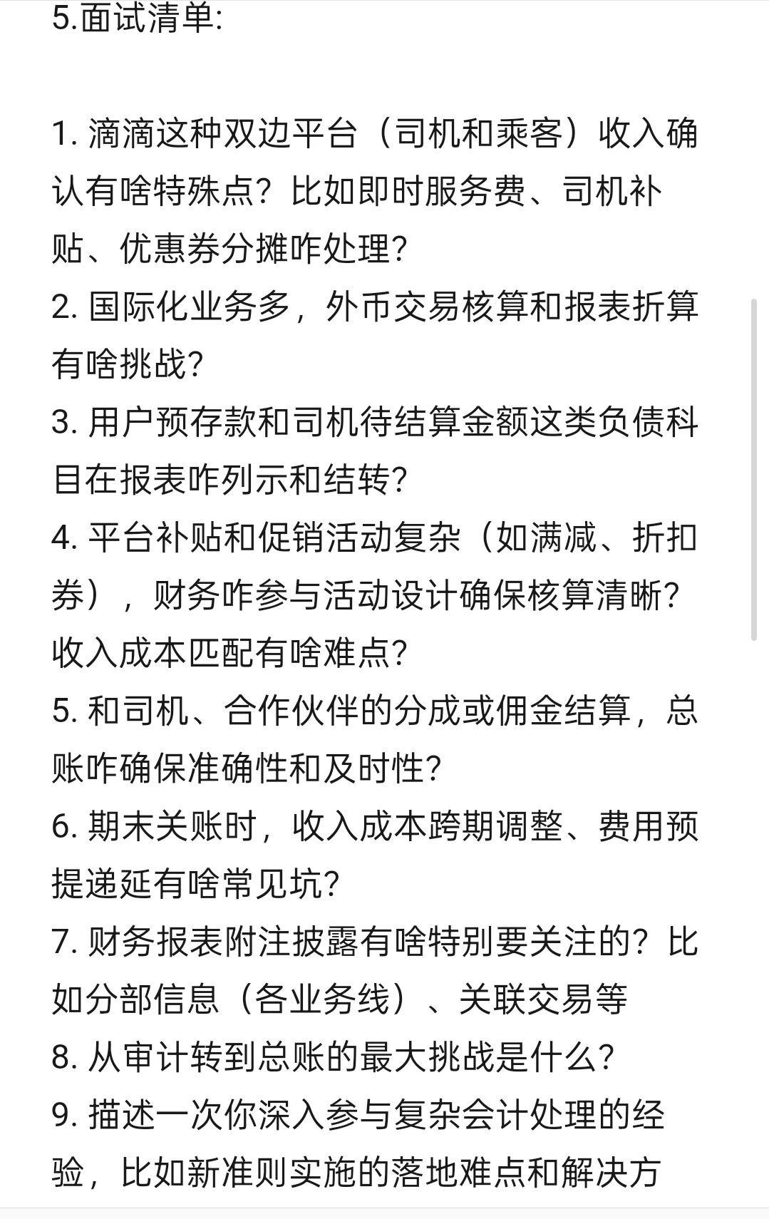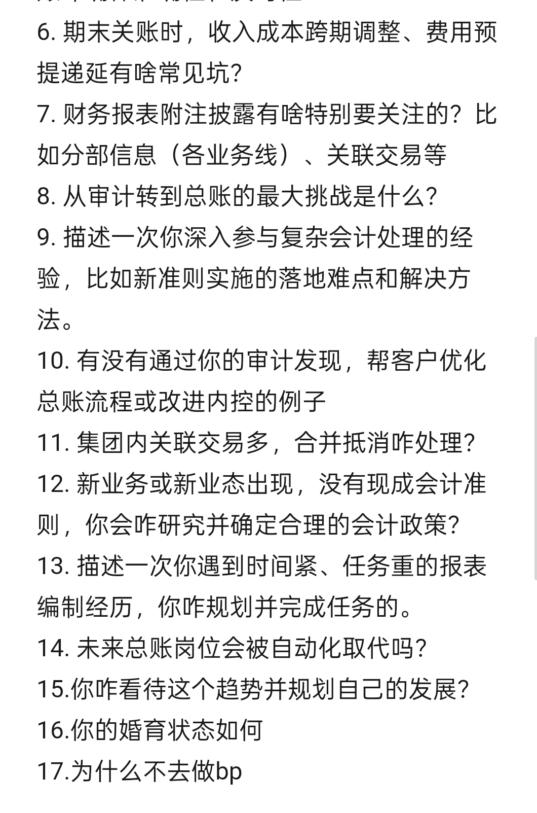 8. 从审计转到总账的最大挑战是什么?