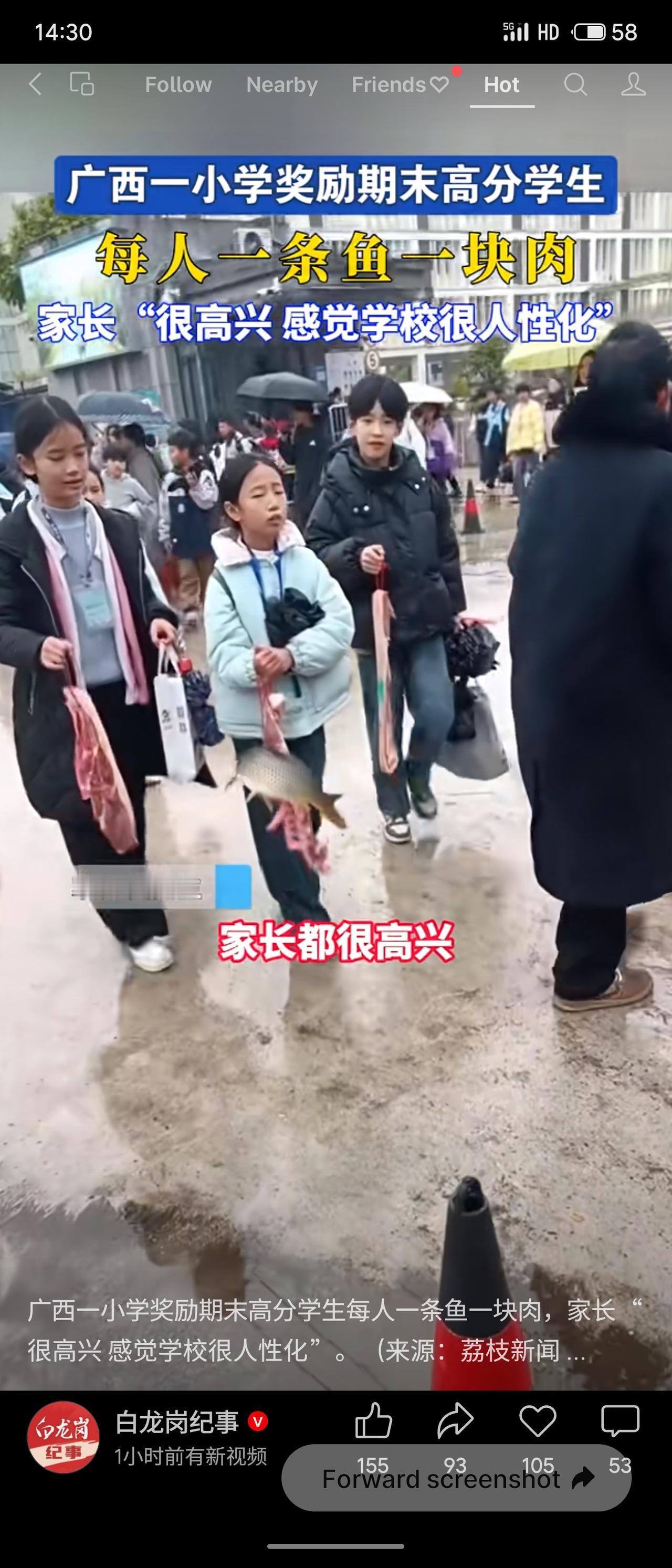 广西一所小学用鲜鱼鲜肉奖励高分学生,形式新颖且实用,让家长倍感温暖。这种贴近生活