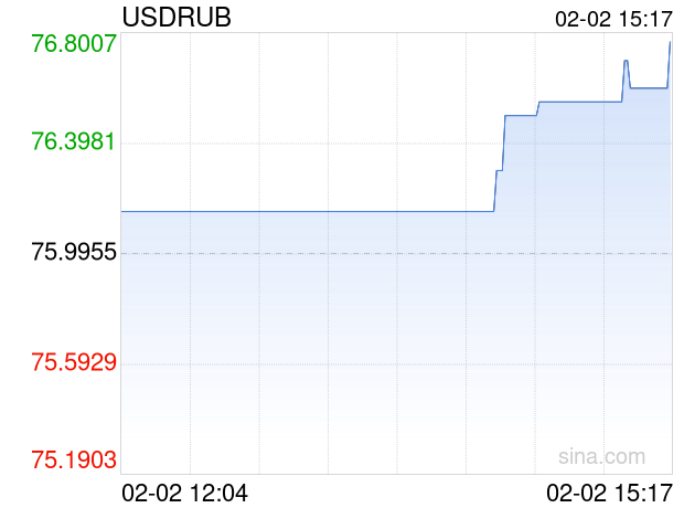 新浪外汇消息2026年02月02日,截至15时17分,外汇市场上美元兑俄罗斯卢布汇率突破1美元兑换76.7700俄罗斯卢布。涨幅为1.0191%