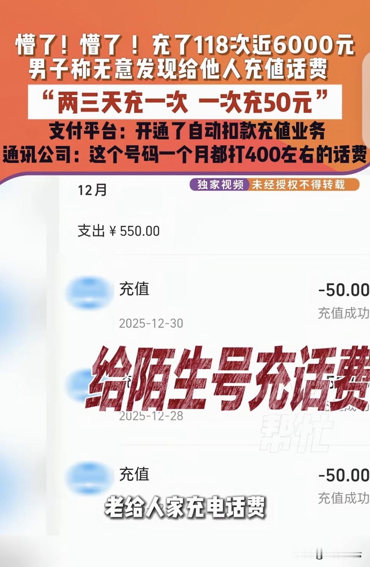 “懵圈了!”河南郑州,一男子惊讶发现,他竟然每3天给一个手机号码充50元话费,一