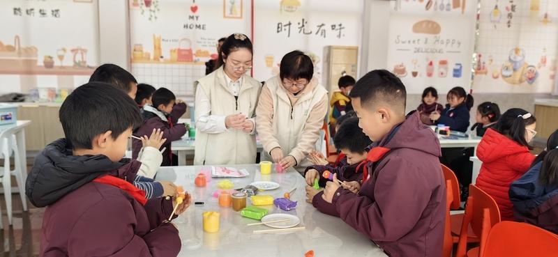 年味藏古韵,匠心传文化。为让孩子们感受中华优秀传统文化的魅力,活动特别设置了糖葫芦文化讲解与黏土糖葫芦制作环节。工作人员向孩子们详细介绍了糖葫芦的起源与寓意——这一源自南宋的传统小吃,从宫廷走向民间,红彤彤的山楂象征吉祥喜庆,一串串串联起团圆美满,既藏着古人的生活智慧,也承载着几代人的童年记忆。讲解结束后,孩子们迫不及待地开启手工创作,在志愿者的指导下,用五颜六色的超轻黏土,发挥天马行空的想象力,制作出一串串独一无二的“糖葫芦”,有的是经典的山楂造型,有的是创意十足的水果、小动物模样,在动手实践中锻炼了协调能力、激发了创造力,也在欢声笑语中品味年味、传承传统文化。