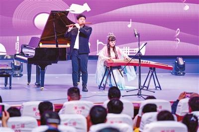 伴随着优美的旋律和欢快的节奏,音乐会在小提琴演奏《花儿为什么这样红》中拉开帷幕。整场音乐会带来钢琴四手联弹、民族管乐器演奏、歌唱表演等14个节目,为市民游客带来一场视听盛宴。