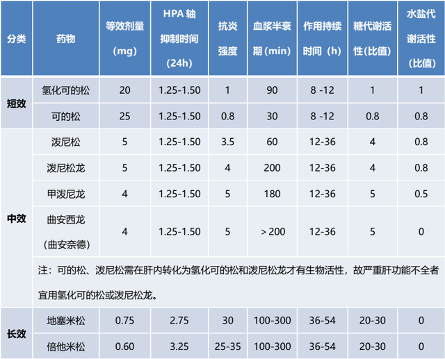 糖皮质激素按作用时间,可分为短效、中效与长效制剂;外用糖皮质激素根据作用强度,可分为超强效、强效、中效和弱效药物。糖皮质激素的比较