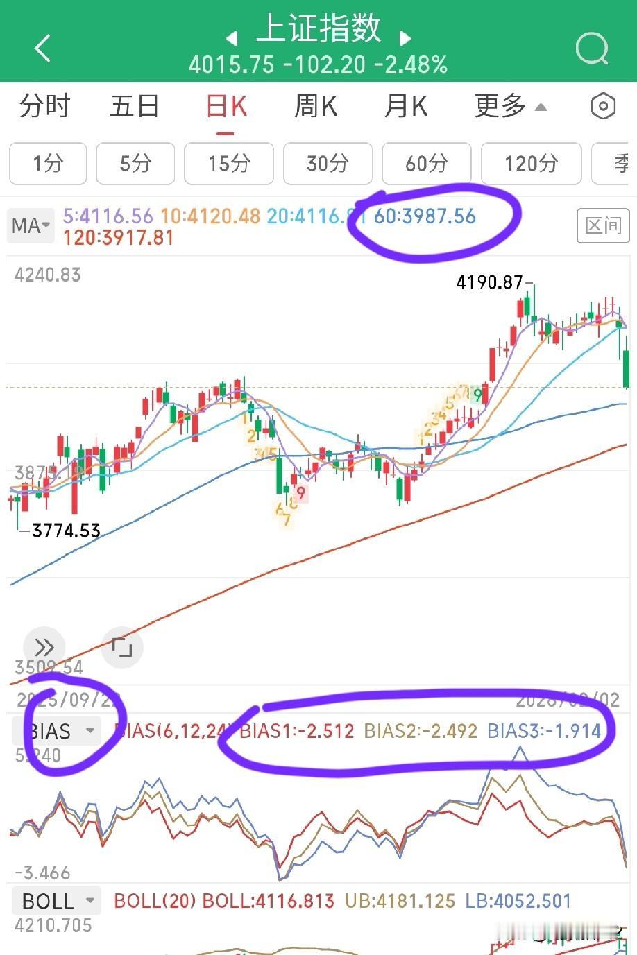 2月2日收评。两市缩量大跌,说明今天跑出去的资金不接盘了,大家都在耐心等待调整结束。没有交易当然就没有成交量了。 老实讲,大盘上午行情还可以,但下午两波跳水说明市场开始有恐慌盘出现了(图1)。不过主力们都比较克制,并没有大量抛筹,否则今天的成交量绝对不止这点。 一般而言,缩量下跌还要跌,明天大概率还有惯性下冲。一轮由资源类大宗商品产生的调整行情终于产生了蝴蝶效应,把今天本来涨得好好的一些板块活生生拉下了水。 明天,我们首先要看一看10周均线4010点(图2)的支撑力度,其后是4000点整数关口。这两个关口一破,就要考验60天均线的3987点(图3)。反正,多头在节节败退,调整的级别在一步步上升,管理层希望的降温,正在进行中。具体调整到什么位置,技术分析只能大约估一估,具体要看管理层的意思。 从沪指日K的乖离率来看,目前已开始出现超卖现象,但要讲调整结束,至少要到下半周。 覆巢之下没有完卵,大家要严格控制好仓位,题材全部熄火的情况下,持仓等待右手进场机会是生存的不二法则。 个人观点,不构成投资依据,不喜勿喷。祝大家明日好运。