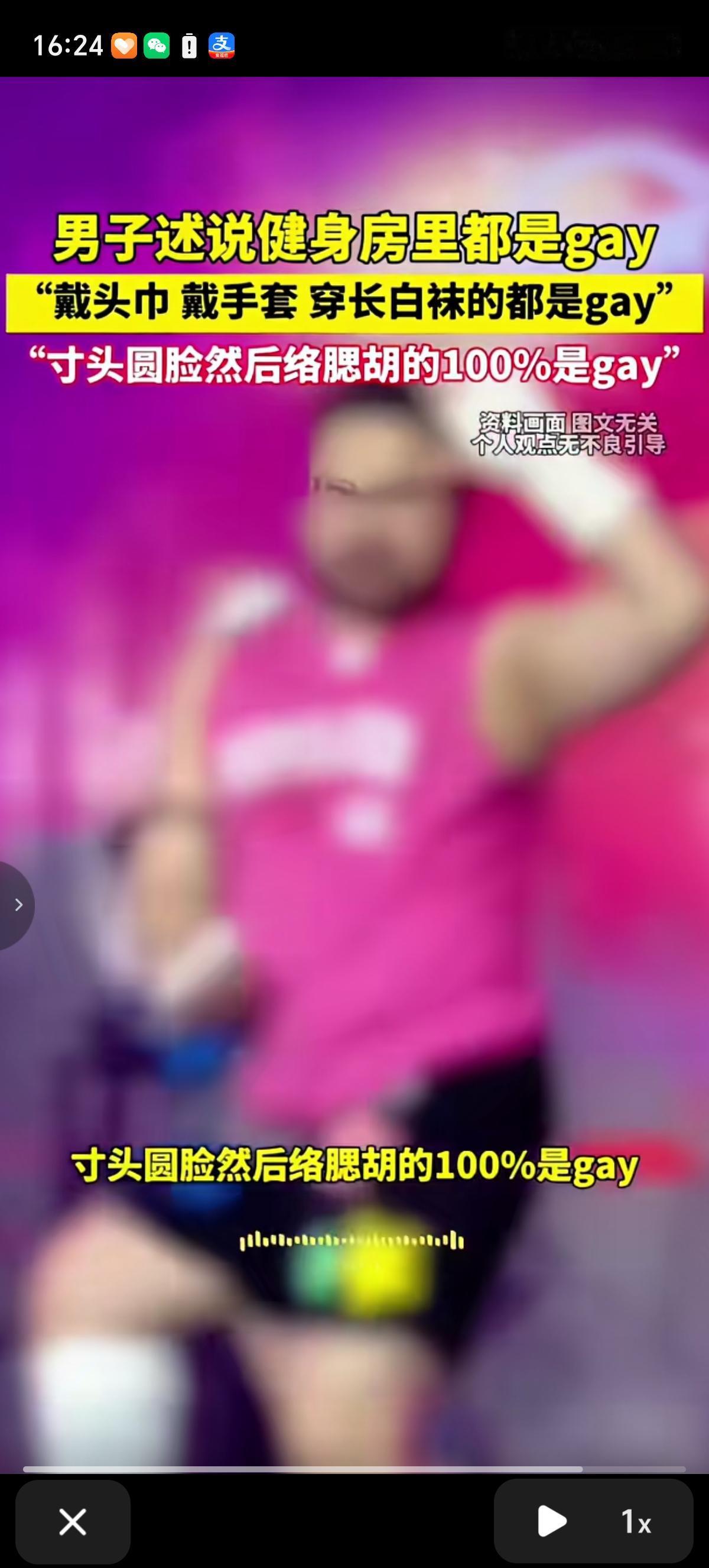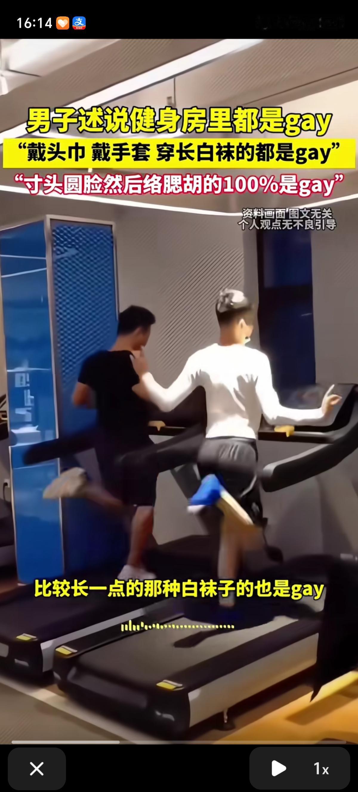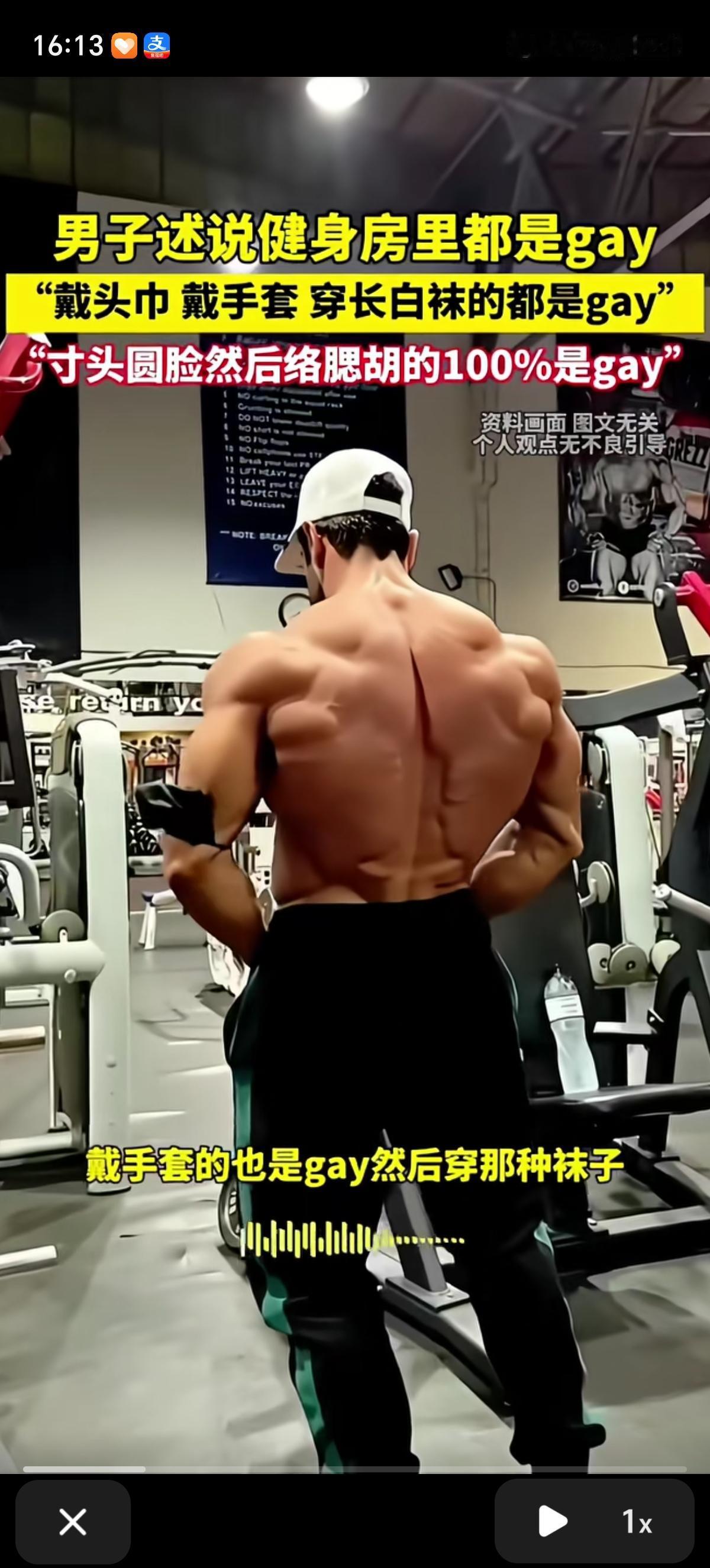 男子讲述健身房里真的都是gay,戴那种头巾的那个是gay;戴手套的也是gay,然