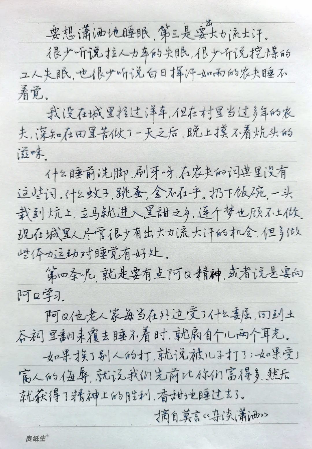 硬笔行书手抄莫言散文《如何睡个好觉》