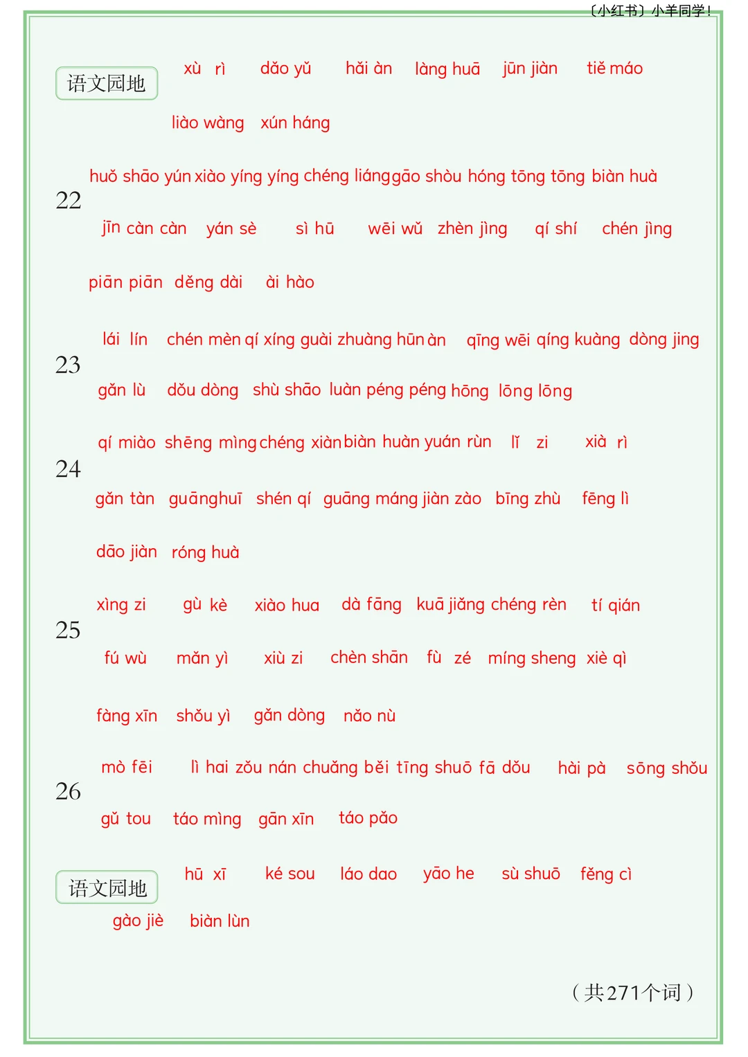 三年级下册丨2026新版词语默写表