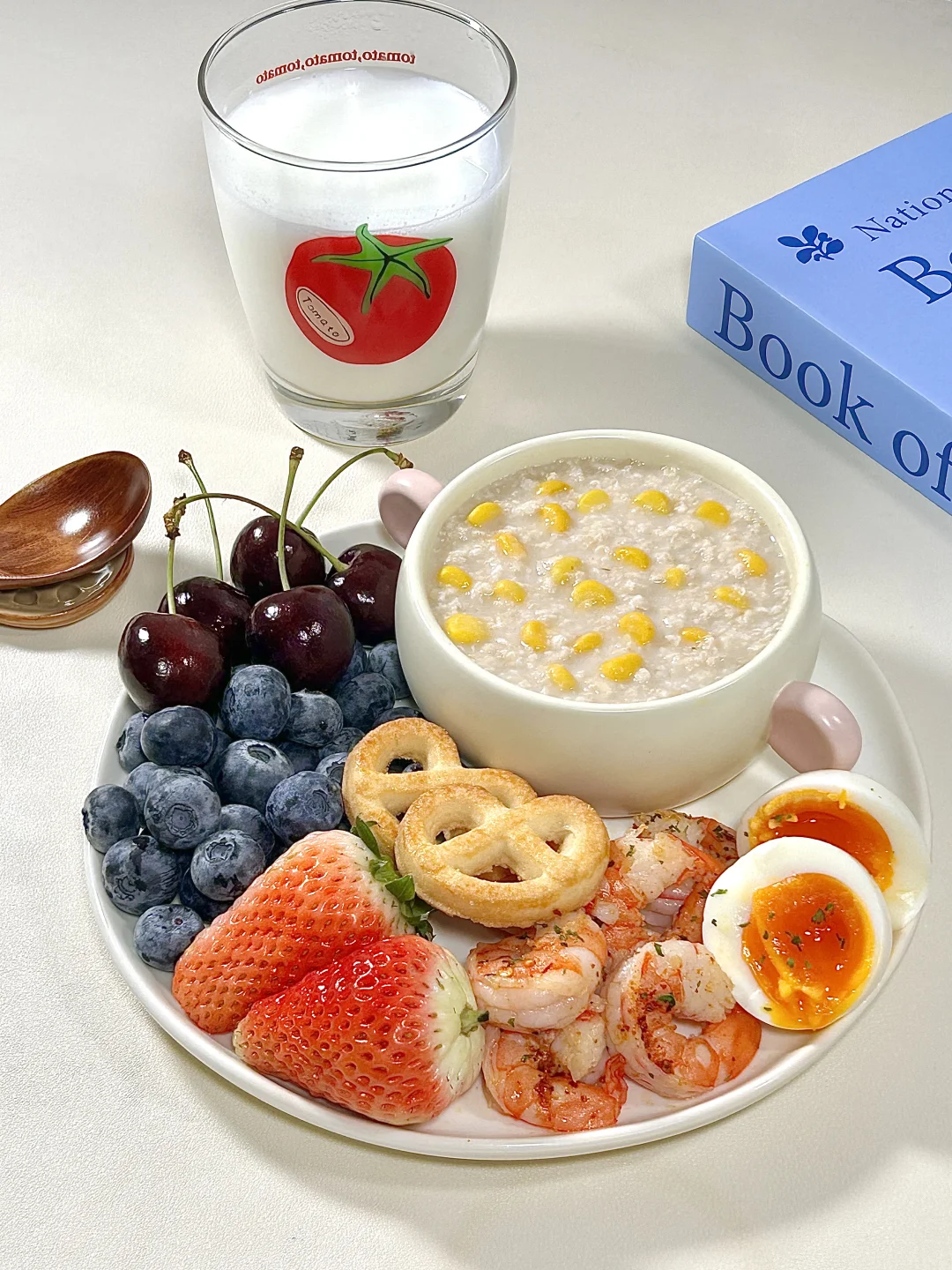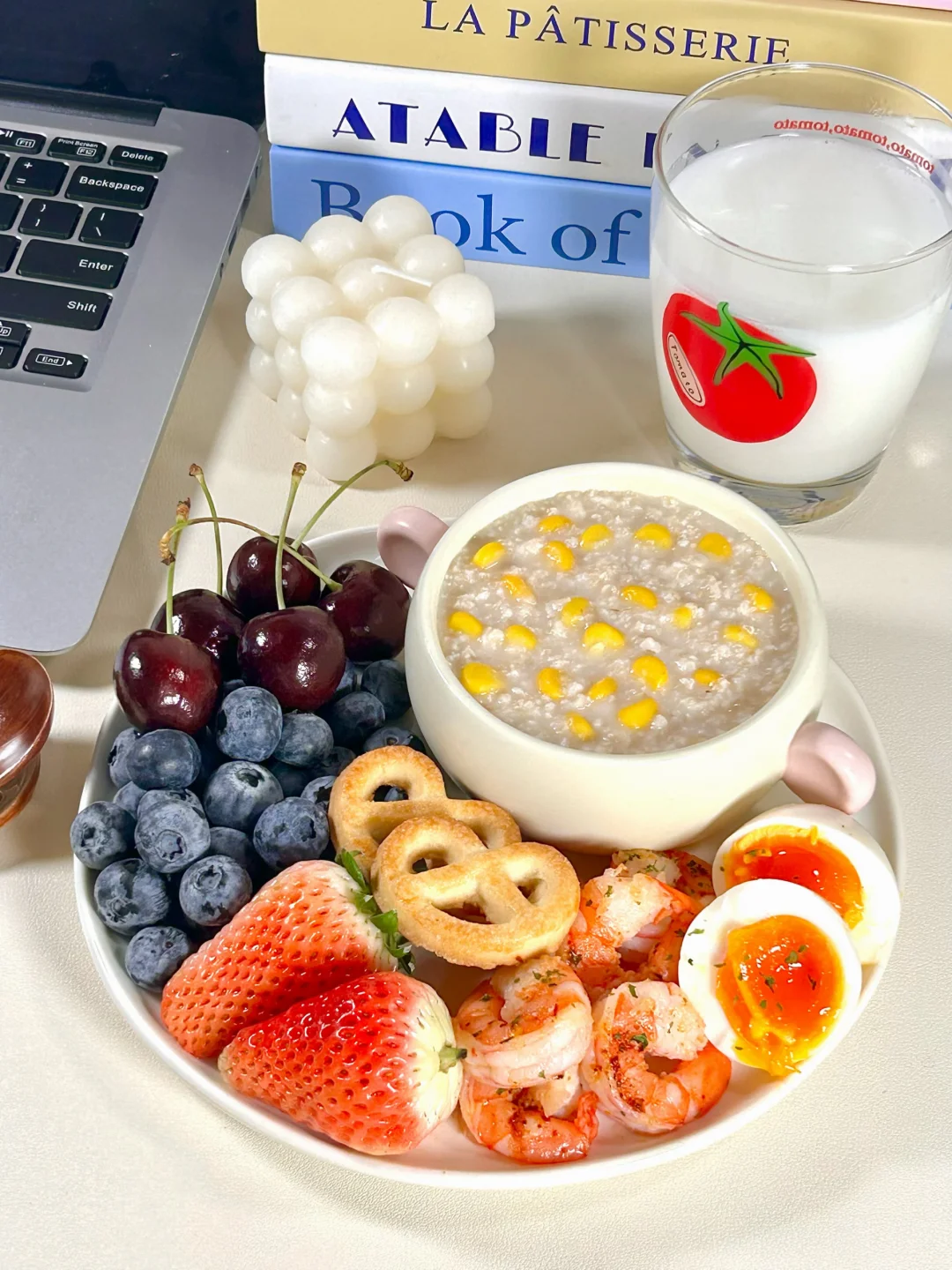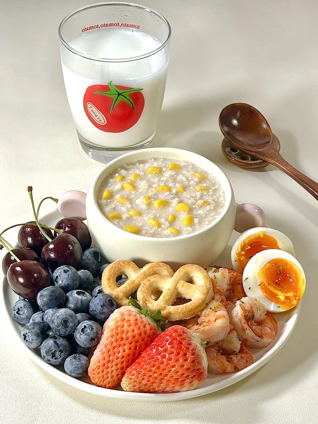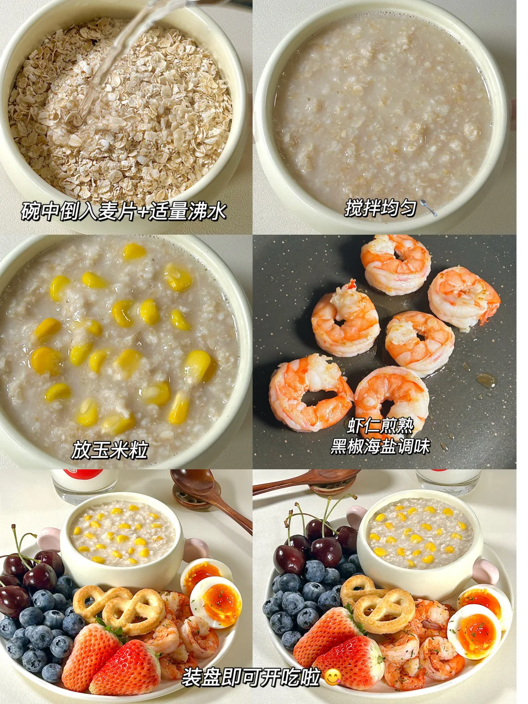 干净饮食🥣玉米燕麦粥虾仁溏心蛋拼盘🥗