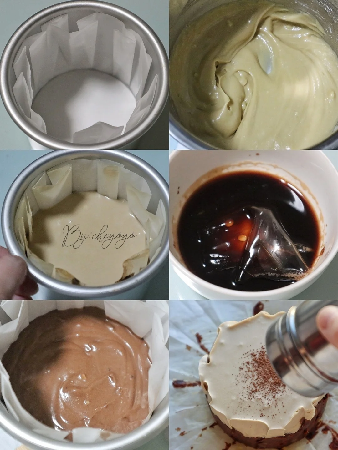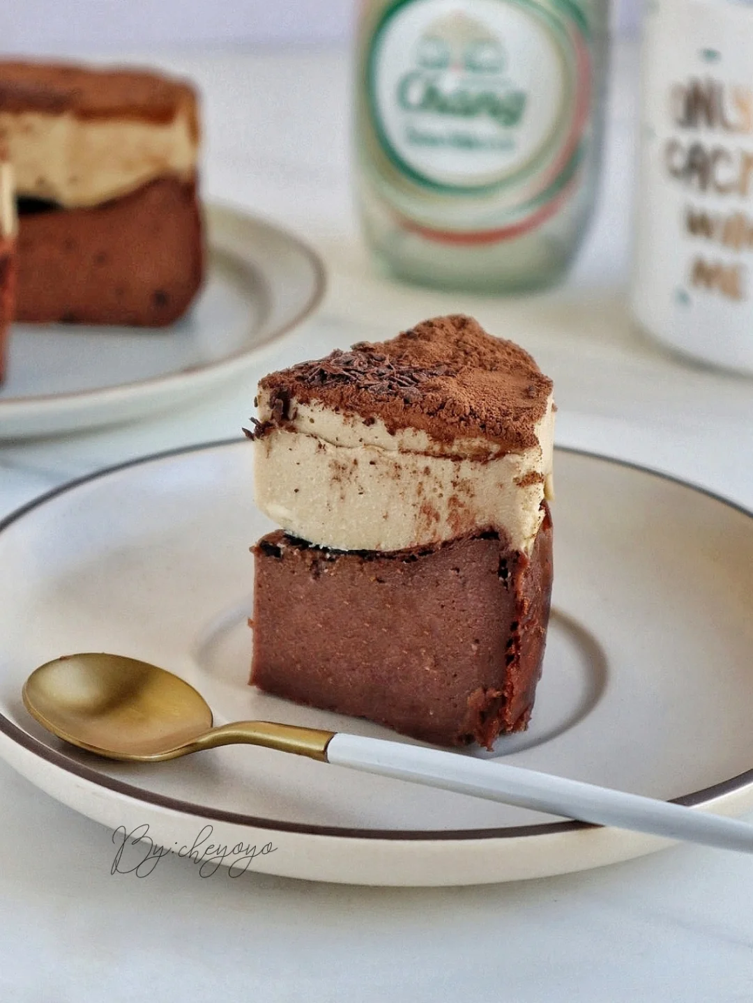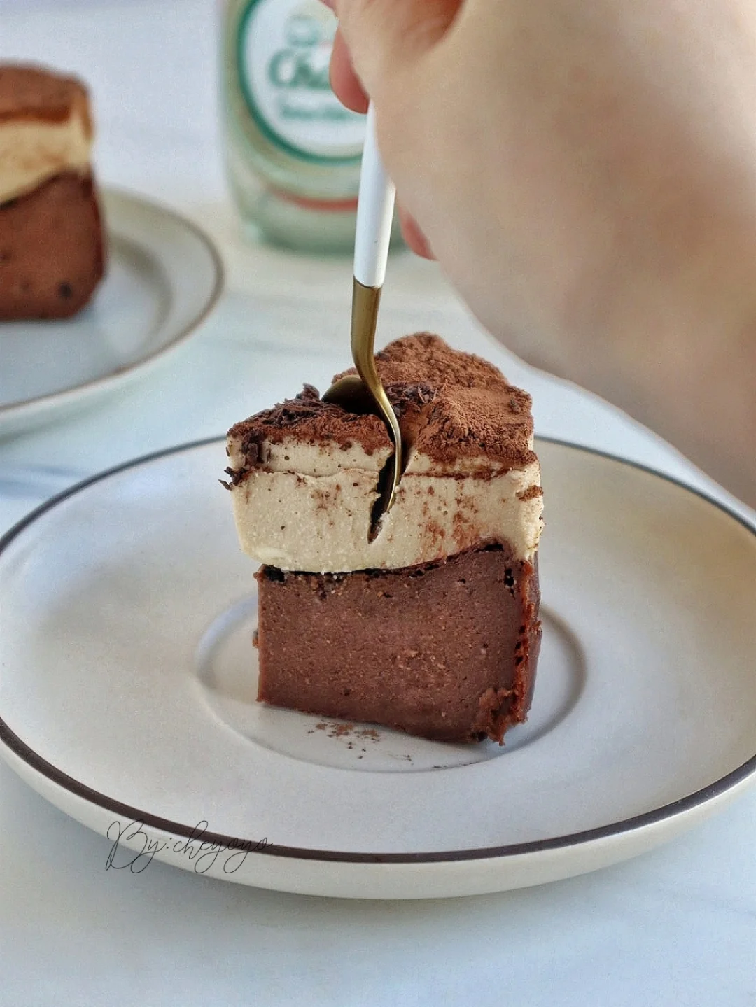 4 寸大小也太治愈了吧!一人食不浪费​!😍 双层口感绝到跺脚!​上层是丝滑到抿嘴就化的咖啡慕斯,下层是浓郁绵密还带点微焦香气的摩卡巴斯克,一口下去双重暴击!甜而不腻,醇香直冲天灵盖!快动手试试!做完绝对被夸爆!😎😎 - ⭐️食材⭐️ *摩卡巴斯克 奶油奶酪……125g 砂糖……25g 常温鸡蛋……1个 意式浓缩咖啡液……15g 玉米淀粉……5g 淡奶油……80g 可可粉……2g 黑巧克力……15g *咖啡慕斯 奶油奶酪……45g 砂糖……15g 淡奶油……50g 意式浓缩咖啡液……20g 吉利丁片……4g *装饰 可可粉……适量 巧克力……适量 - ⭐️做法⭐️ ① 4寸圆形加高模具中铺好油纸; ② 奶油奶酪室温软化,加砂糖搅至顺滑无颗粒,分次加入鸡蛋搅拌均匀,加入咖啡液、玉米淀粉搅拌至充分融合; ③ 黑巧克力放入淡奶油中隔热水搅至融化,加入可可粉搅拌均匀,倒入②中,搅匀过筛后倒入模具中,送入220度烤箱烘烤25分钟,烤好后表面会有点焦斑,放凉至室温; ④ 咖啡液中加入泡软的吉利丁片,隔热水搅拌至吉利丁片融化; ⑤ 奶油奶酪加砂糖搅拌均匀,加入咖啡液吉利丁液搅匀,加入淡奶油搅匀,倒入冷却的巴斯克上; ⑥ 送入冰箱冷藏4小时以上(过夜更佳!),脱模后筛一层可可粉,撒上巧克力碎屑,enjoy! - 配一杯热咖啡或红茶,坐在窗边慢慢吃,这才是下午茶的正确打开方式啊!​冷藏3天内吃完口感最佳~​ 🥰 年夜饭甜品 甜启新岁