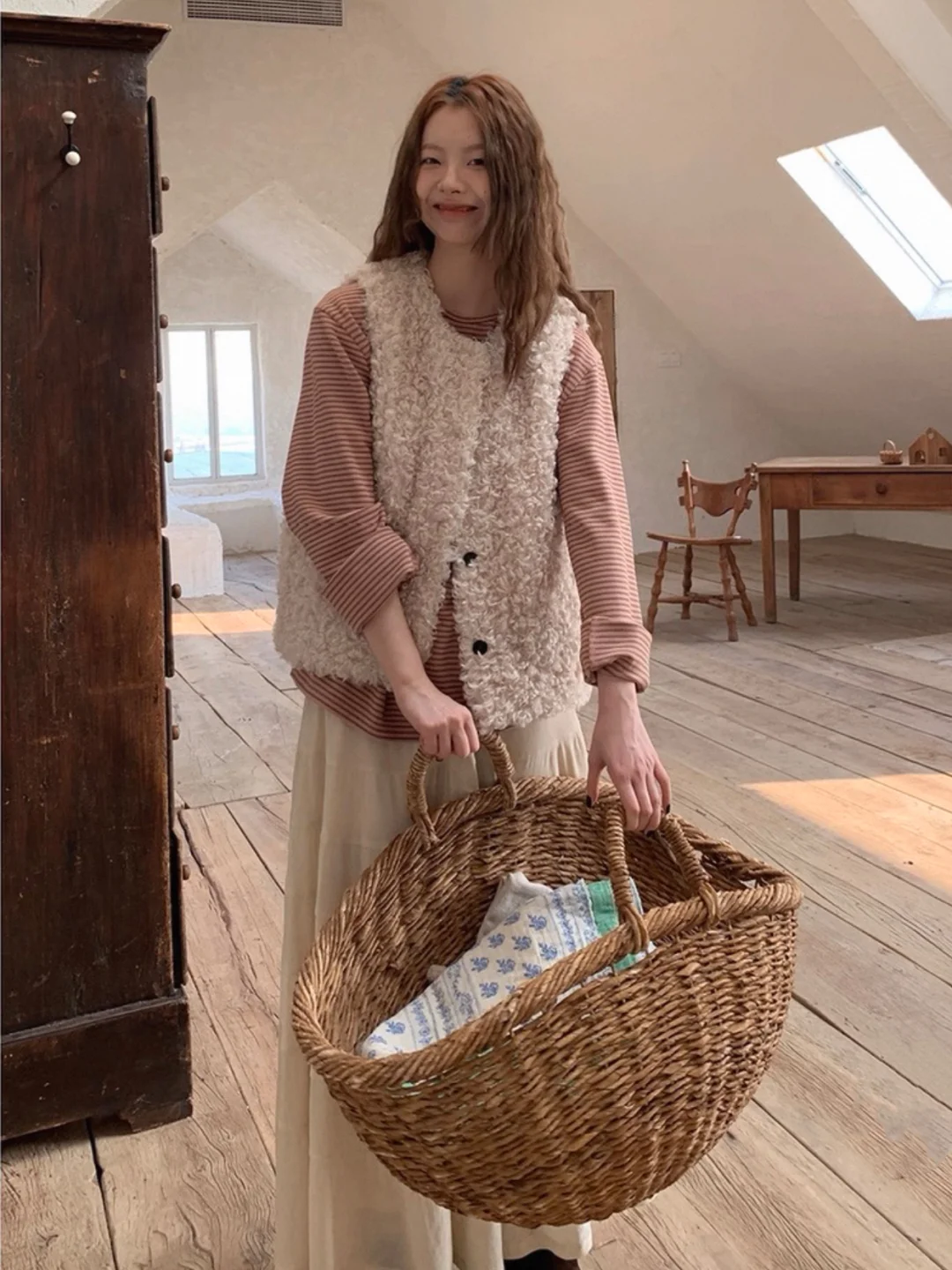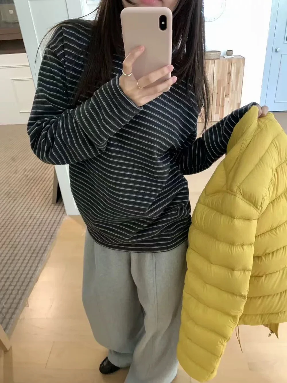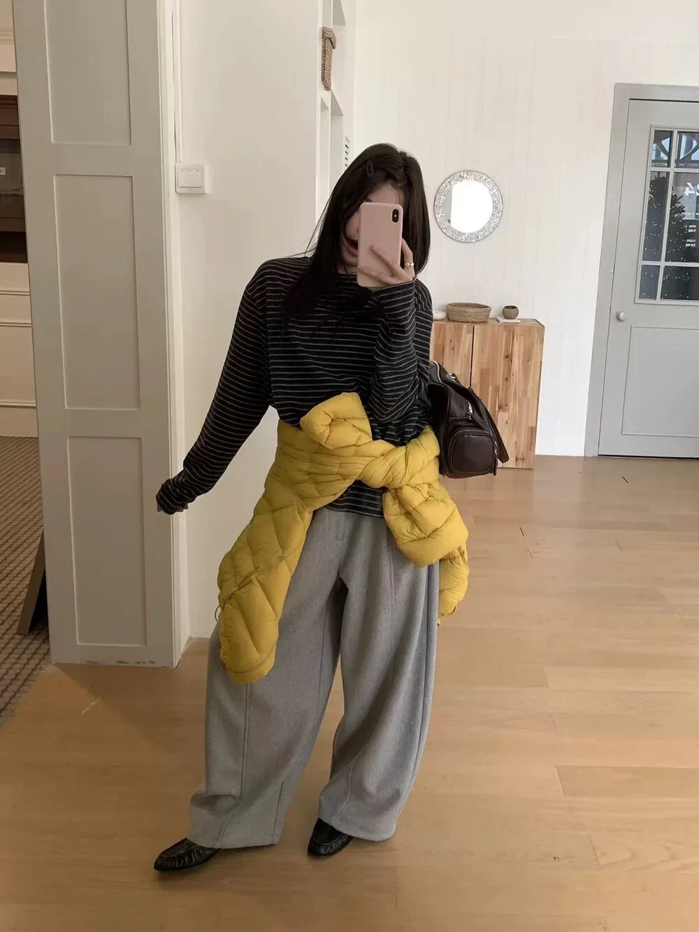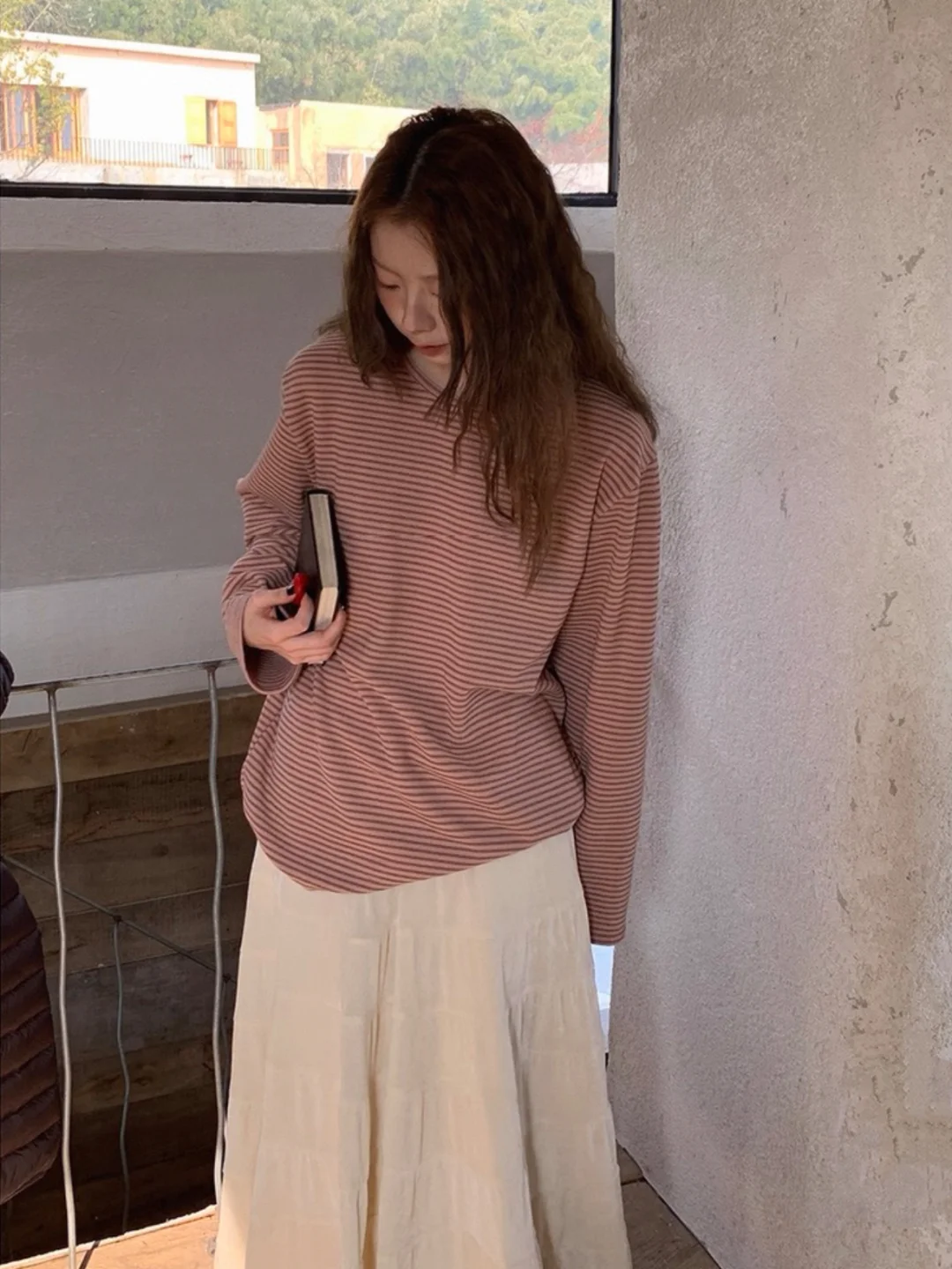 这件韩系条纹T恤我真的锁死🔒 羊毛混棉的面料,手感厚实又软糯 秋天单穿或者冬天做内搭都超合适 经典的黑白条纹,简约又显瘦 宽松的版型对身材包容性巨好 随便搭条牛仔裤就能出门 懒人必备的百搭神器了属于是