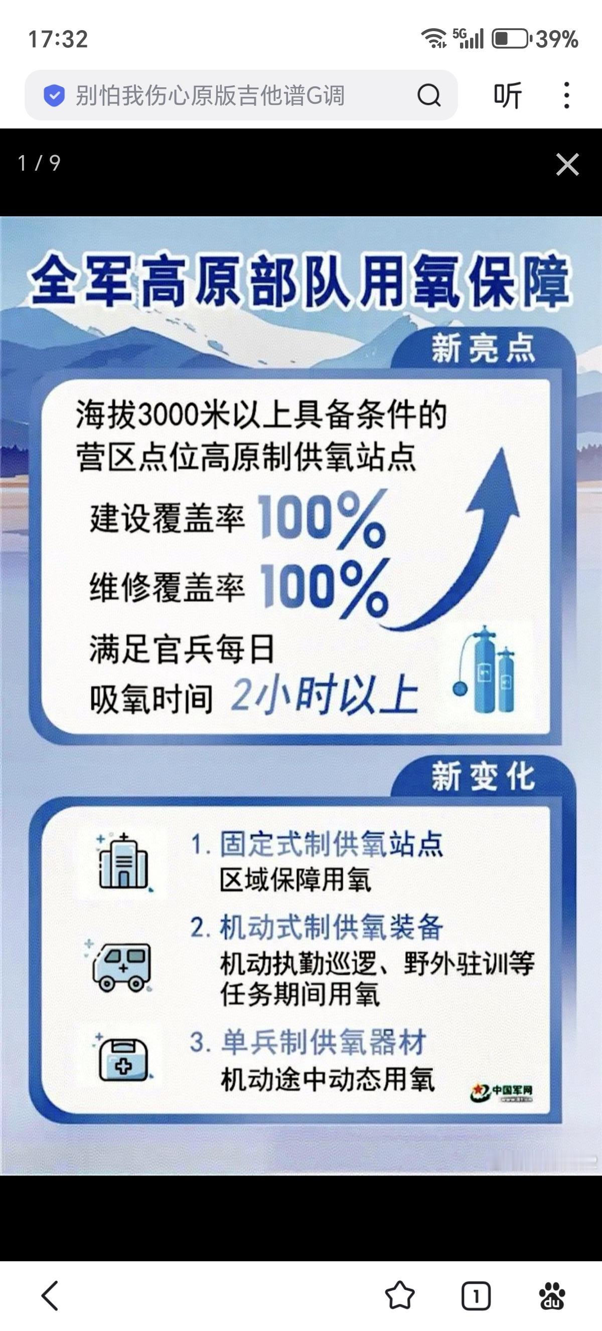 高原用氧已经全覆盖 为方便官兵在机动执勤巡逻、野外驻训等任务期间用氧,有关部门为部队配备制氧方舱、高原制氧车等装备;针对官兵机动途中动态用氧需求,配备单兵制供氧器材,高原部队用氧保障从“救命氧”“保健氧”向“常态氧”“战斗氧”拓展。 以固定式制供氧站点为区域支点、机动式制供氧装备为支撑、单兵制供氧器材为一线补充,点面结合、阶梯辐射的我军高原制供氧保障体系基本建成。 全军高原制供氧保障能力实现整体跨越,为高原部队官兵健康守防、练兵备战提供坚强保障!