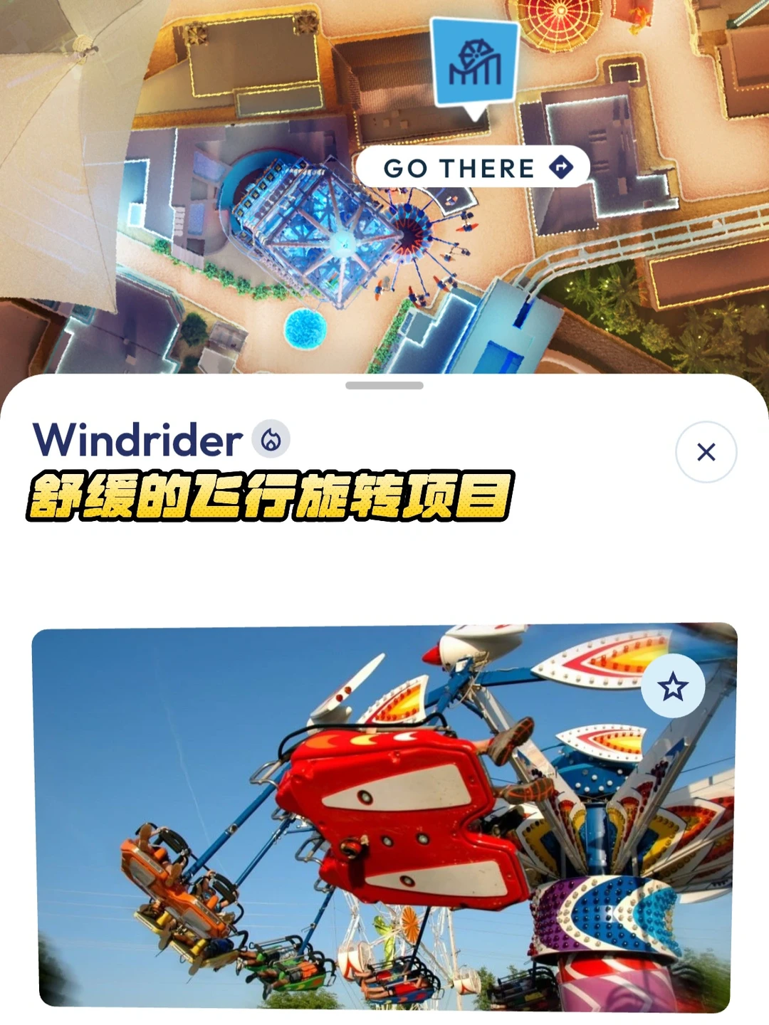 4️⃣乘风者(Windrider):飞行旋转项目,类似旋转木马。适合不敢玩刺激项目的玩家,全程趴着模拟飞行姿势。