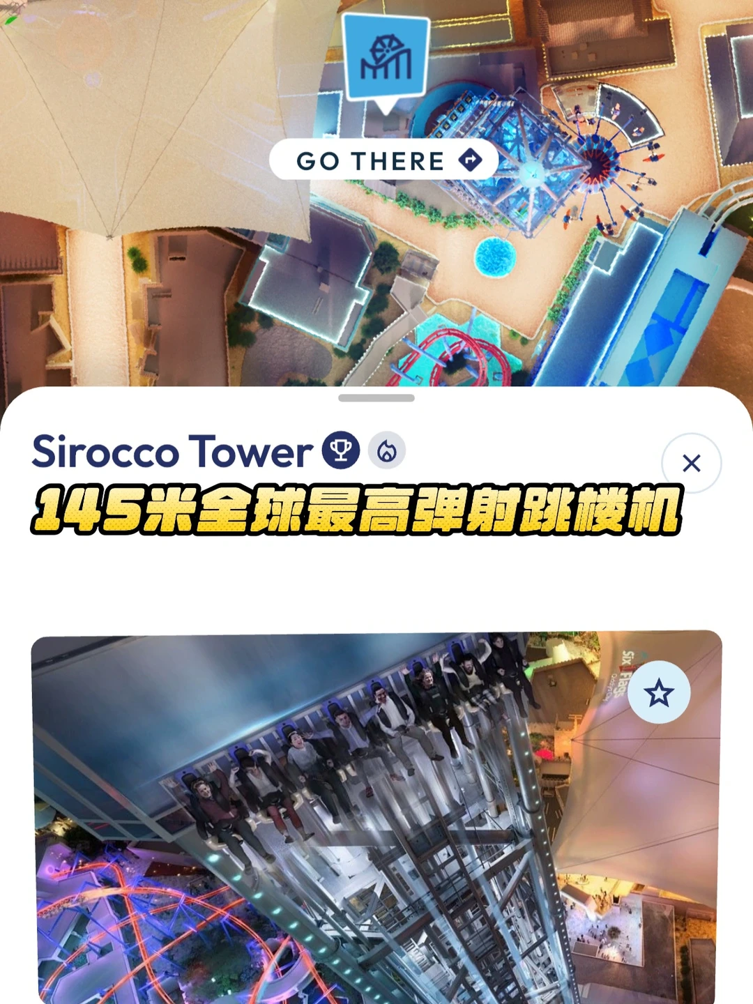 2️⃣西罗哥塔(Sirocco Tower):该主题区第二项世界纪录,145米全球最高弹射塔。