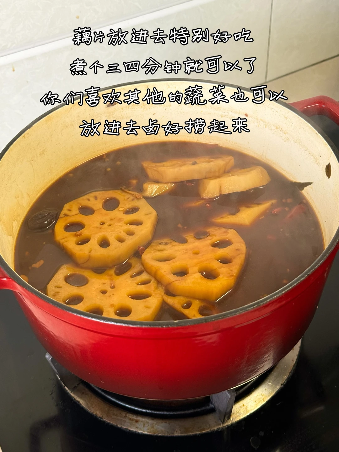 8. 藕片放进去特别好吃煮个三四分钟就可以了你们喜欢其他的蔬菜也可以放进去卤好捞起来