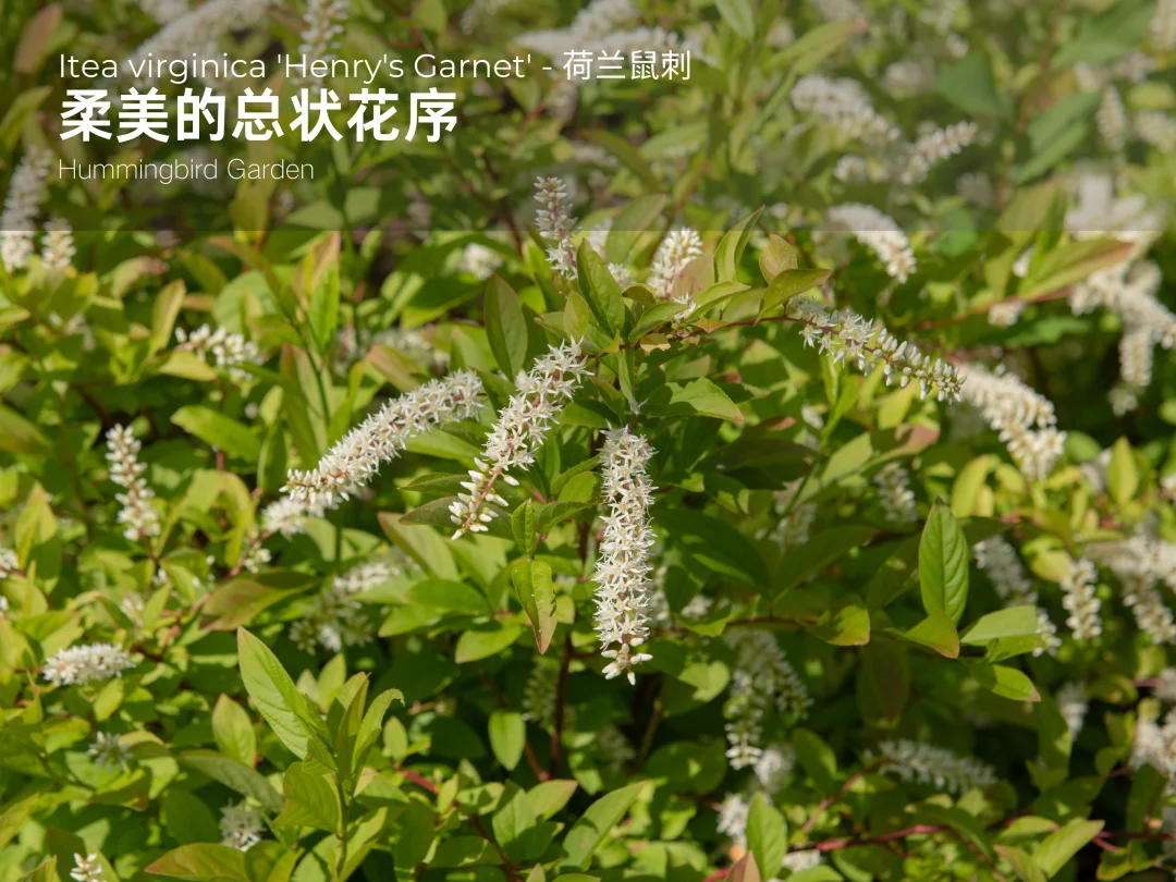 荷兰鼠刺(Itea virginica 'Henry's Garnet')隶属鼠刺科,是一种多年生落叶花灌木。尽管中文商品名为“荷兰鼠刺”,但其原种北美鼠刺(Itea virginica)实际上原产于美国,原生环境多见于沼泽边缘、溪流沿岸及湖畔等湿润地带。
