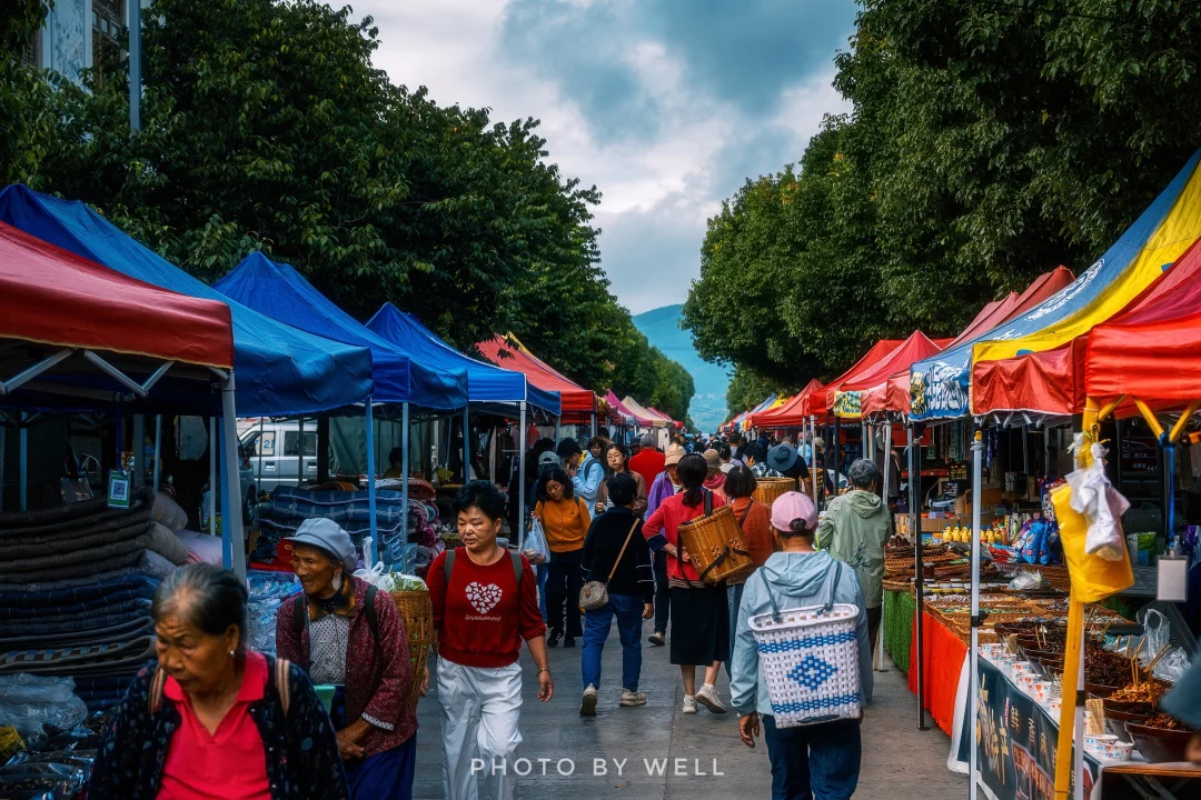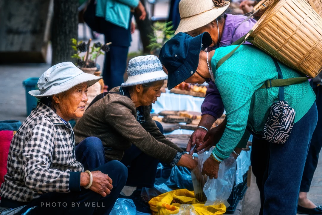沙溪的集市文化延续千年,如今以更加多元的形式呈现。我们特意赶上了每周五的赶集日去体验了集市,现在的市场搬到了离寺登街有一、二公里的新镇区域,赶集日附近村民会带来各种农产品和手工艺品。