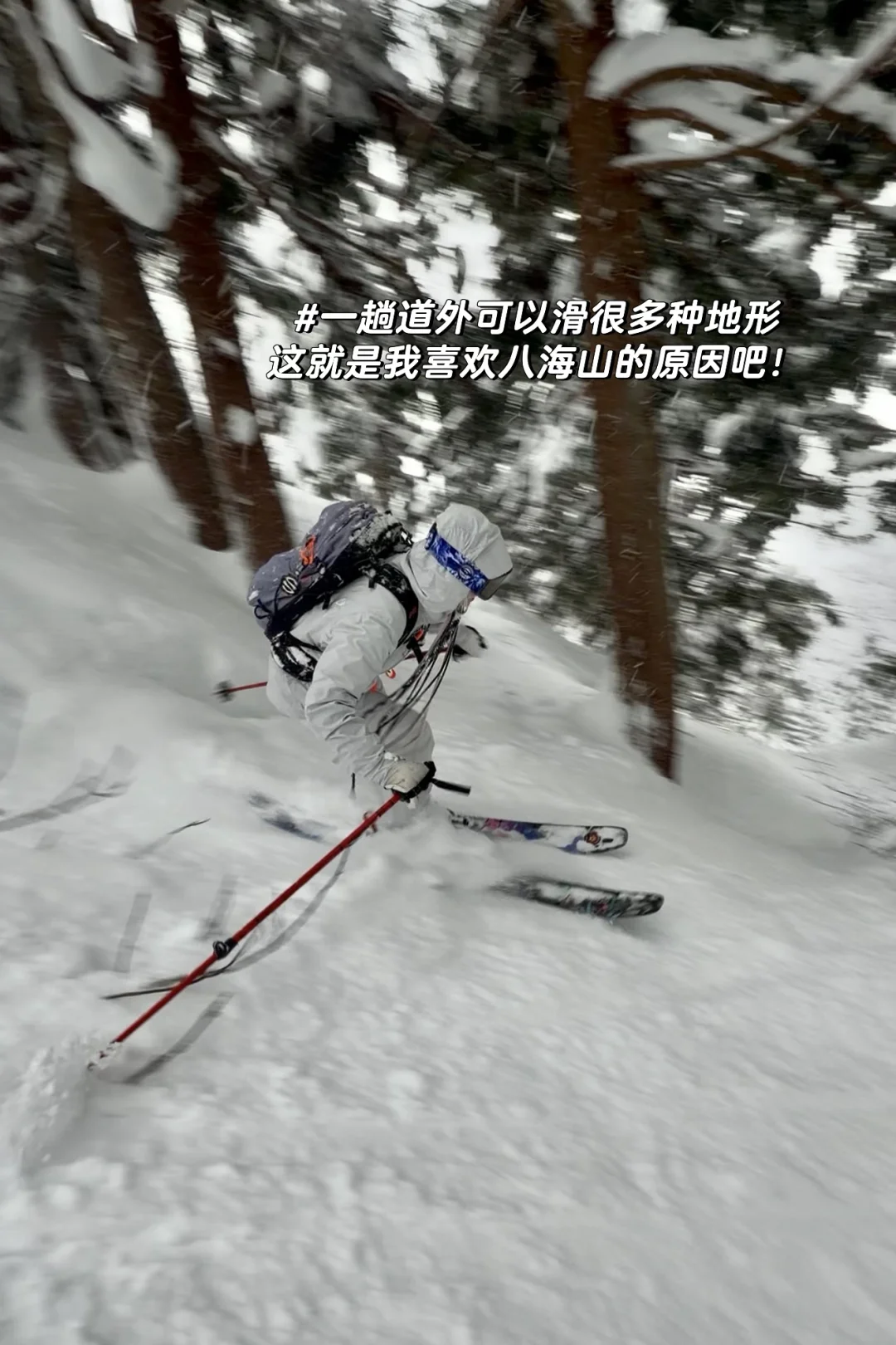 老炮天堂新手地狱,滑双板的第三年,来八海山的第二年,连滑6天了每天滑到emo…雪场很小,但是降雪量超大!道外地形复杂多样,没有平坡树林,都很陡!如果人多雪道内都是蘑菇包,滑起来很累!人少的情况不多,赶上了道内也能冲粉,可遇不可求。 经常出事的死亡谷,大家还是没把握别去,如果没能在该出去的位置滑回道内那就很难再出来了!