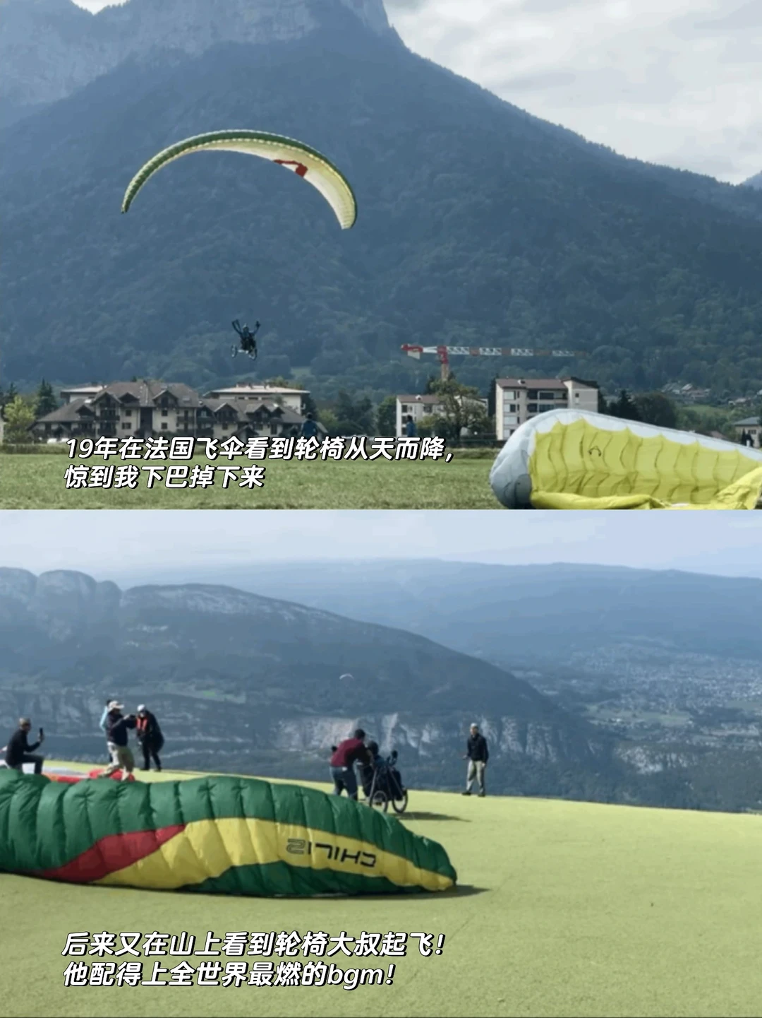想起19年在法国飞伞,连着几天看到一位坐着轮椅,但依旧翱翔在天空的飞行员大叔,有一天鼓起勇气去找他聊天,在降落场我们相互击掌cheers to life。