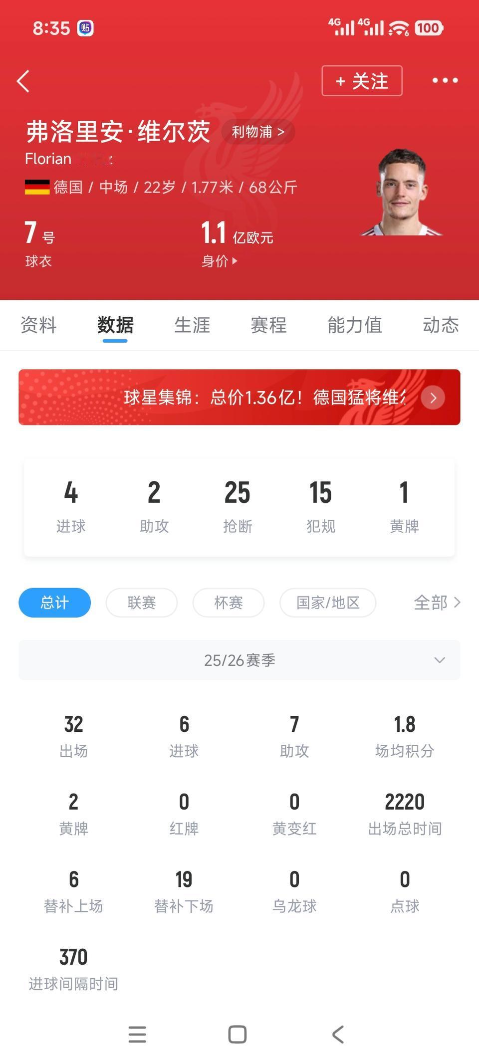 维尔茨本赛季双10数据很简单,跟杰拉德水平差不多了。 杰拉德在利物浦18个赛季,186球155次助攻,平均每个赛季10球7助攻。 维尔茨不愧是德国天才,追求利物浦英超时代最强中场有希望,这才第一年,未来不敢想象呀!![呲牙]