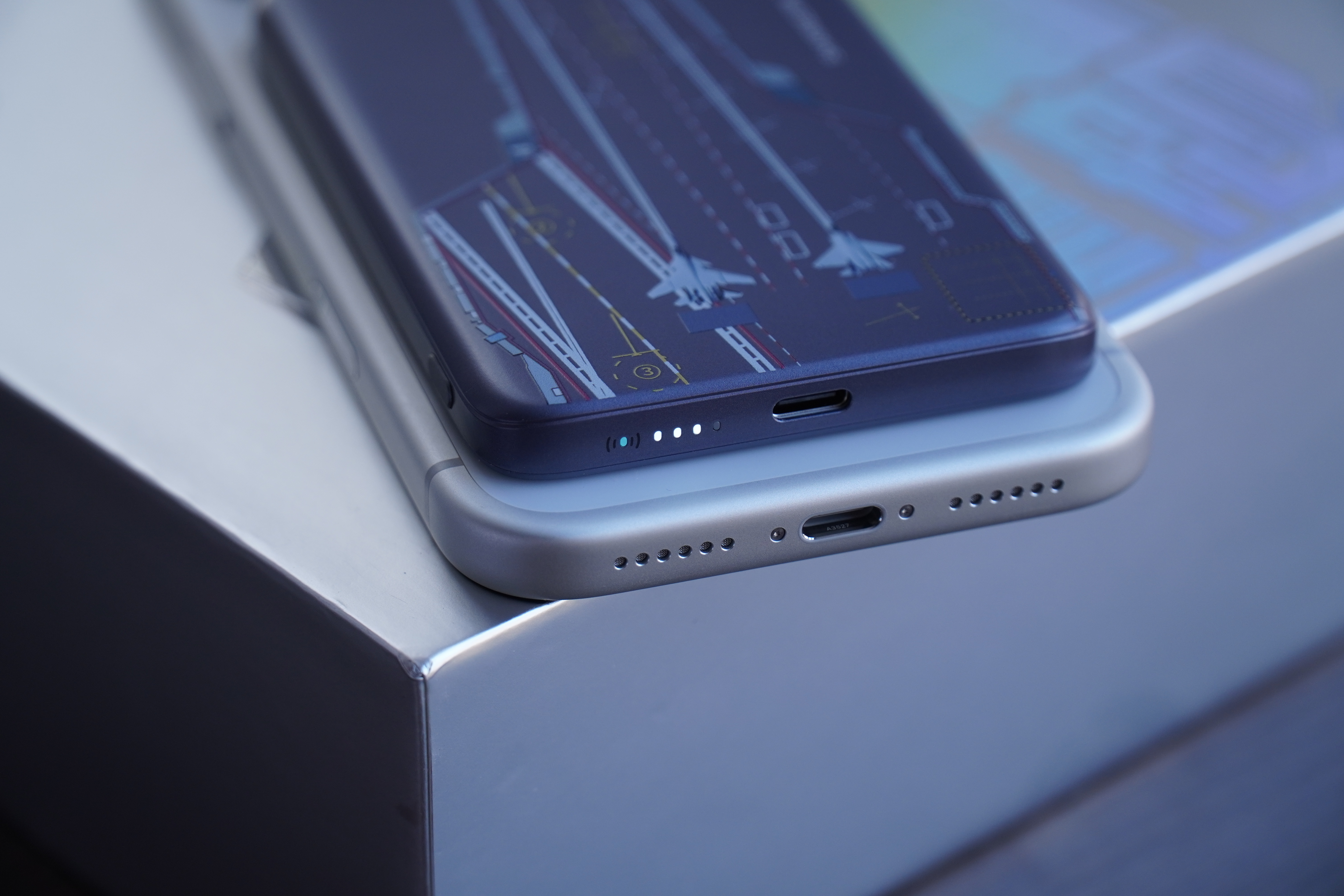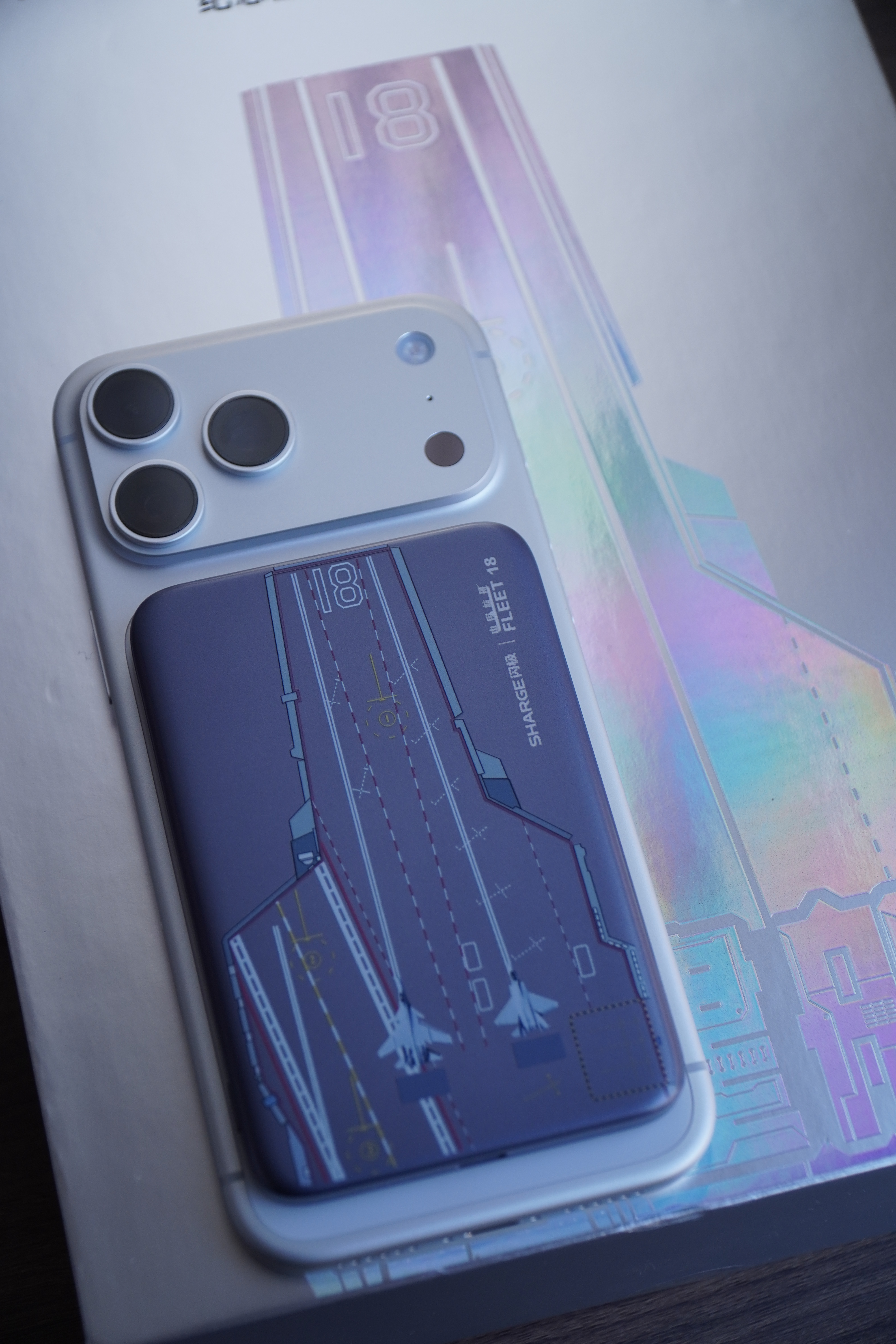 然后就是这个充电宝,居然是闪极×中国航母联名版,联合中船七一四所打造,采用金属阳极氧化工艺,航母甲板涂装,真够硬核的!手感方面真超级无敌轻薄,厚度仅0.87cm,重量113g,支持Qi2协议,能提供有线20W和无线15W的功率,有3C认证,全球都可以丝滑过安检。我就经常出差然后遇到手机没电,够小巧够轻薄,确实很方便了