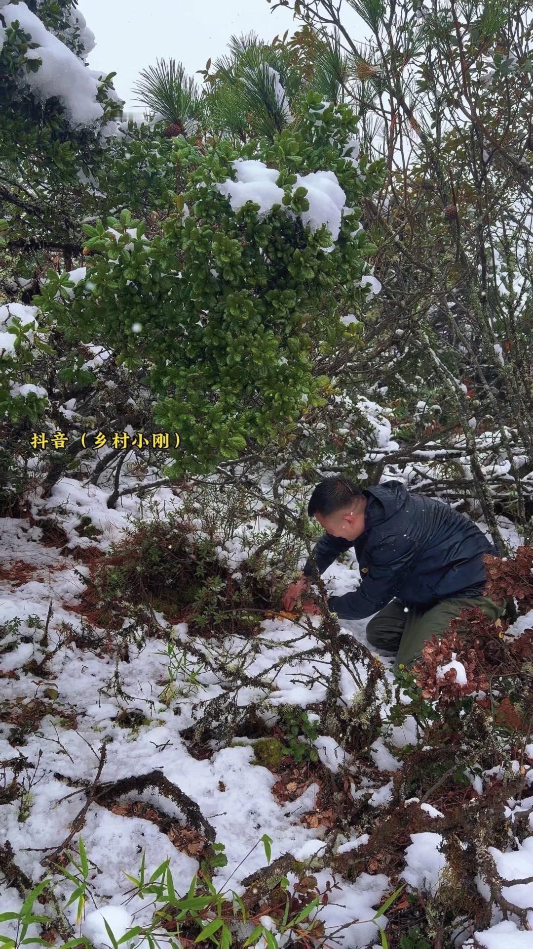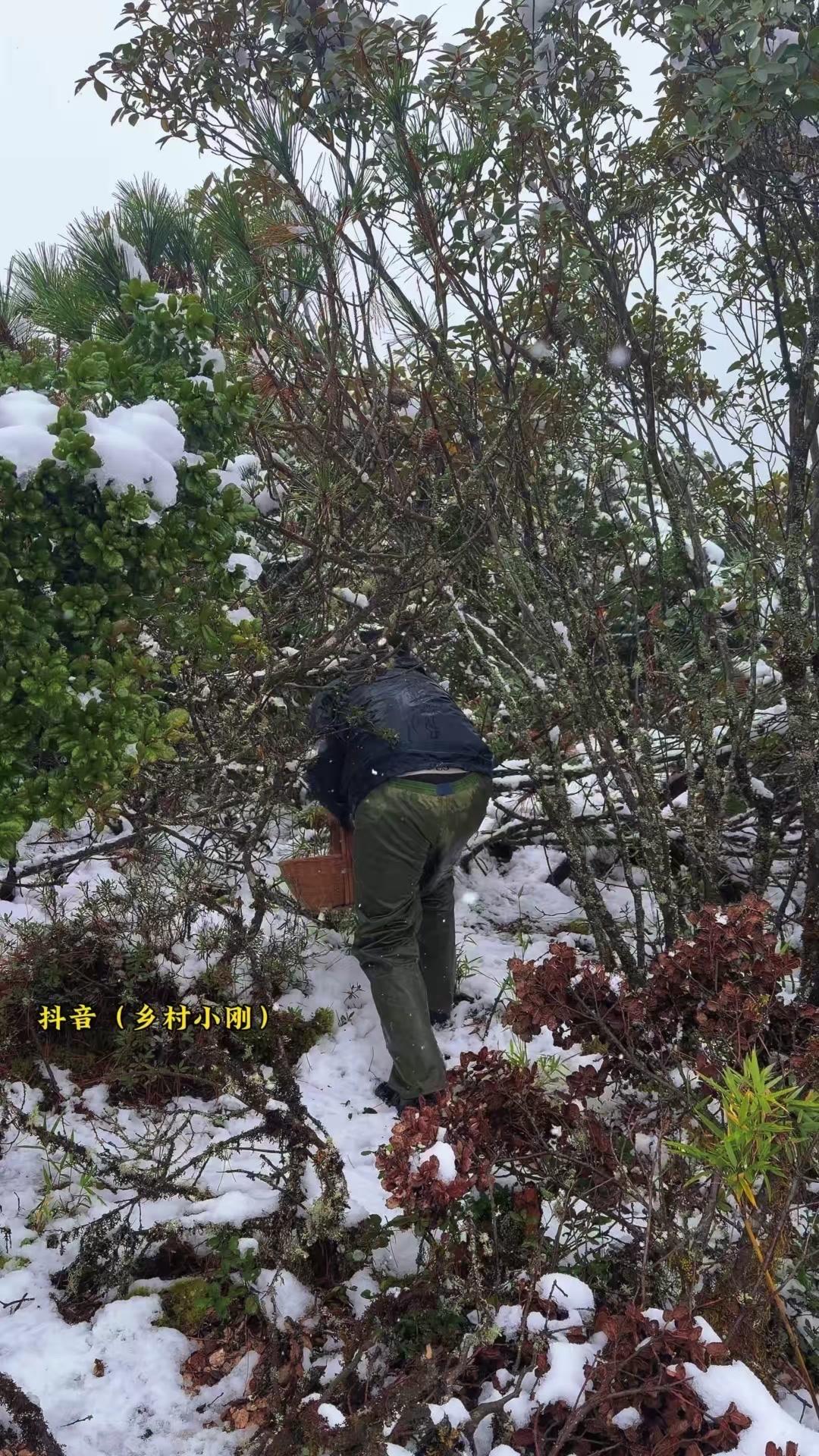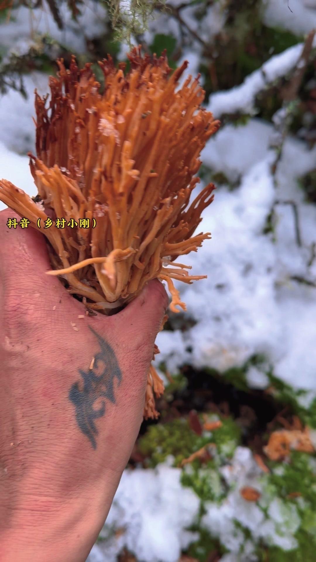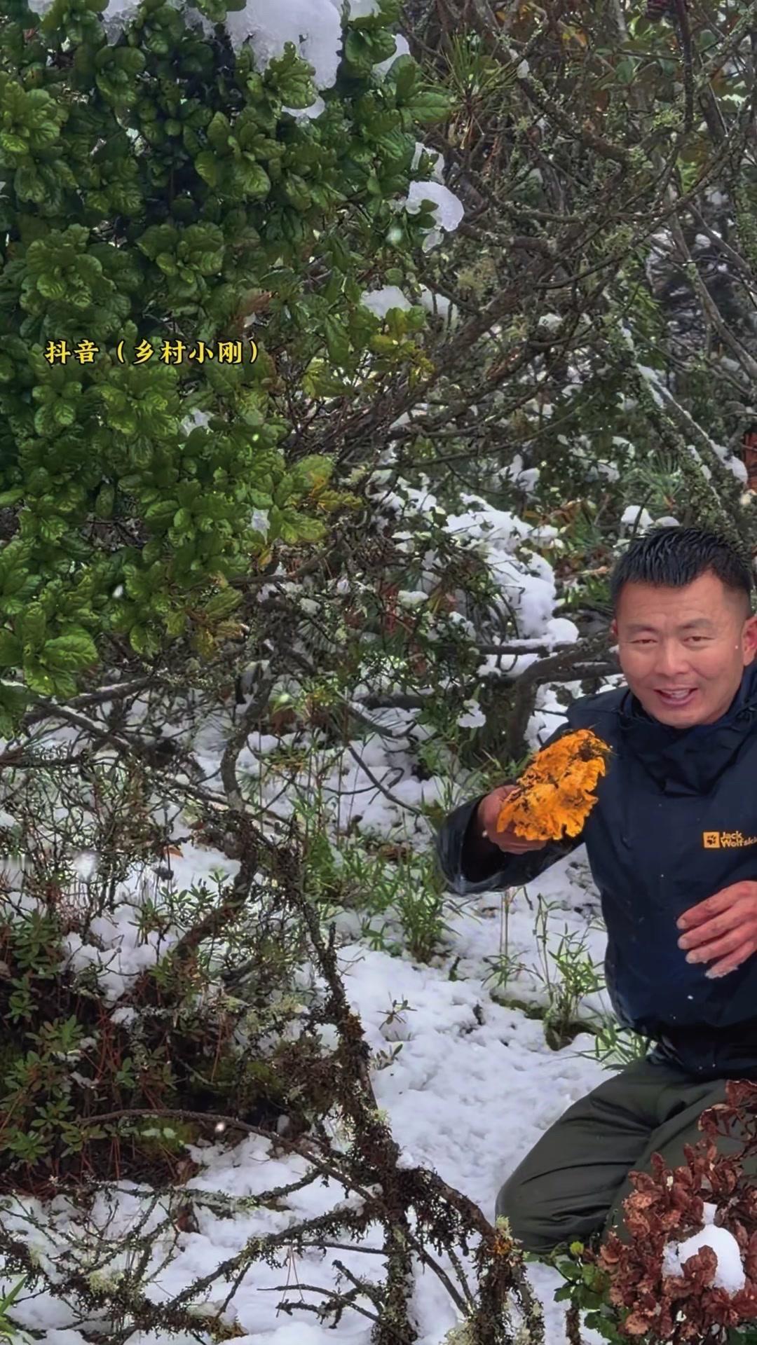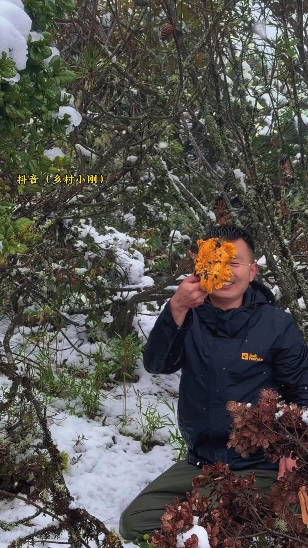 没想到吧,下雪天也能采到蘑菇!刚上山就看到好大一朵鸡油菌,简直惊喜到尖叫~