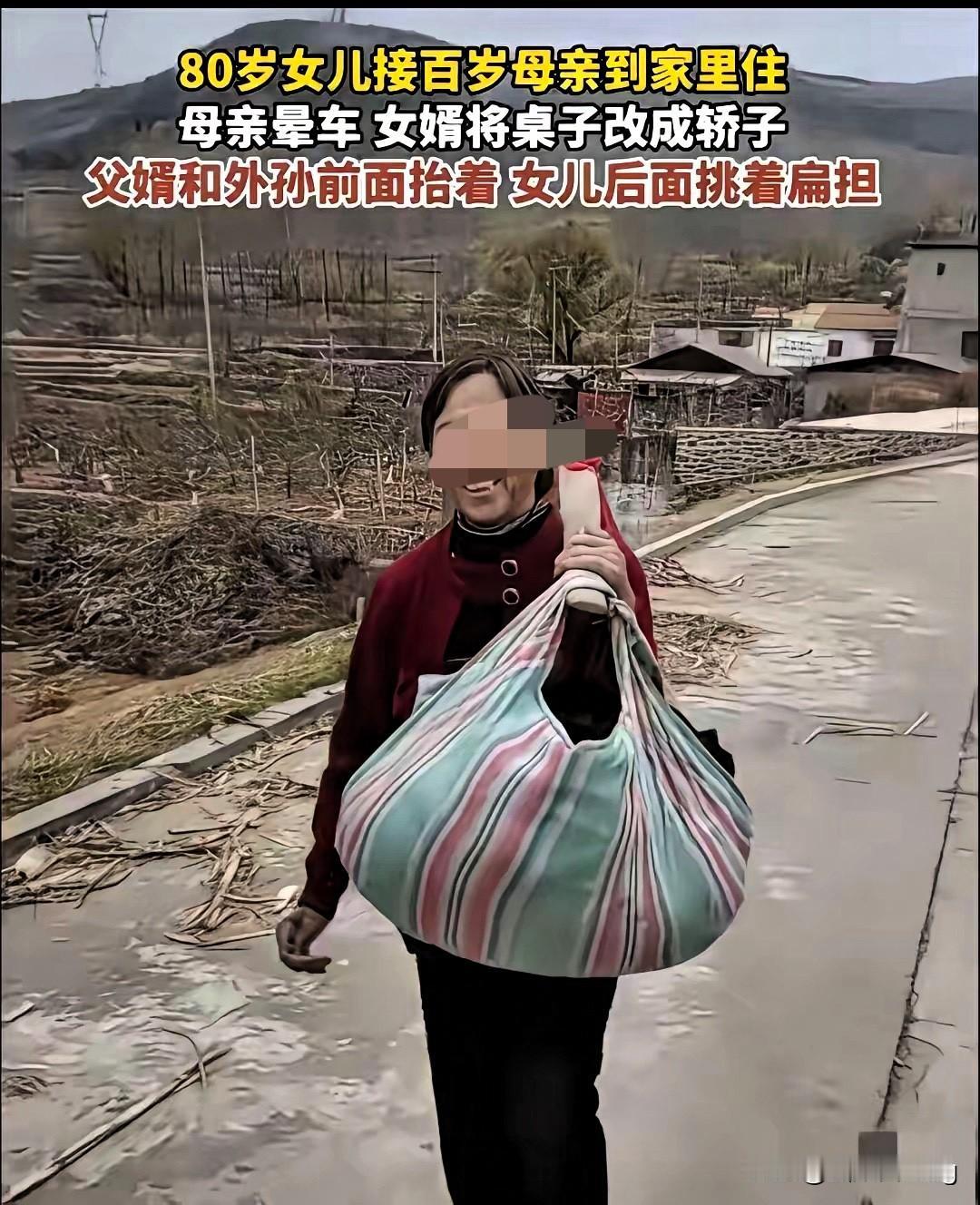 看到这个画面真的瞬间破防!80岁女儿想接百岁母亲同住,怕老人晕车,女婿直接把桌子改成轿子,和外孙一起抬着走,女儿在后面挑着担子,一家人脸上的笑容比啥都暖! 这哪是简单的接亲同住,分明是把孝心融进了最实在的行动里。比起那些嘴上喊着孝顺、却嫌麻烦不愿多付出的人,这家人用最笨拙也最真诚的方式,诠释了亲情该有的样子。年龄从来不是尽孝的阻碍,80岁依旧是妈妈的小棉袄,女婿外孙更是把这份孝心扛在了肩上,这样的家风,比任何财富都珍贵。 孝心从来不是作秀,而是发自内心的体贴与陪伴。你被这家人的温馨画面打动了吗?