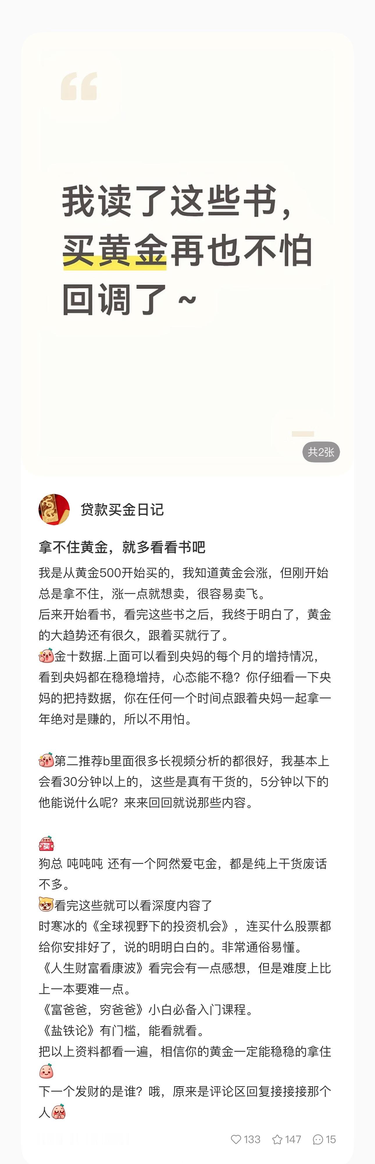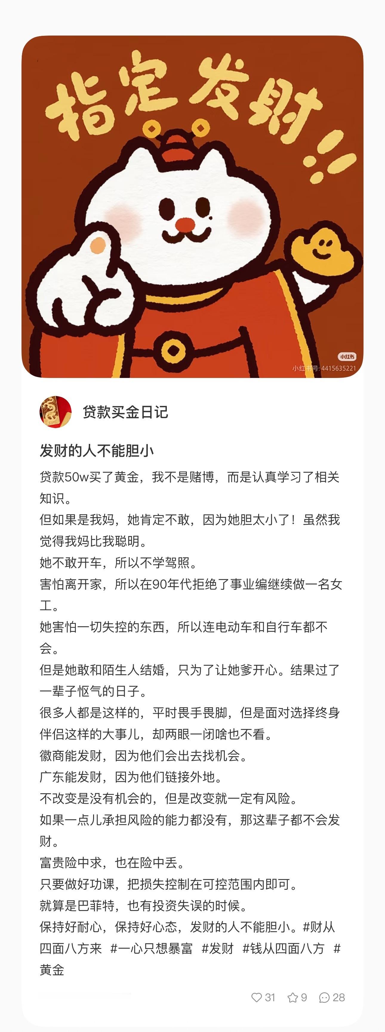 小某书上有个博主,说自己贷款50万买黄金前几天还在晒收益,但是最近已经4天没更新