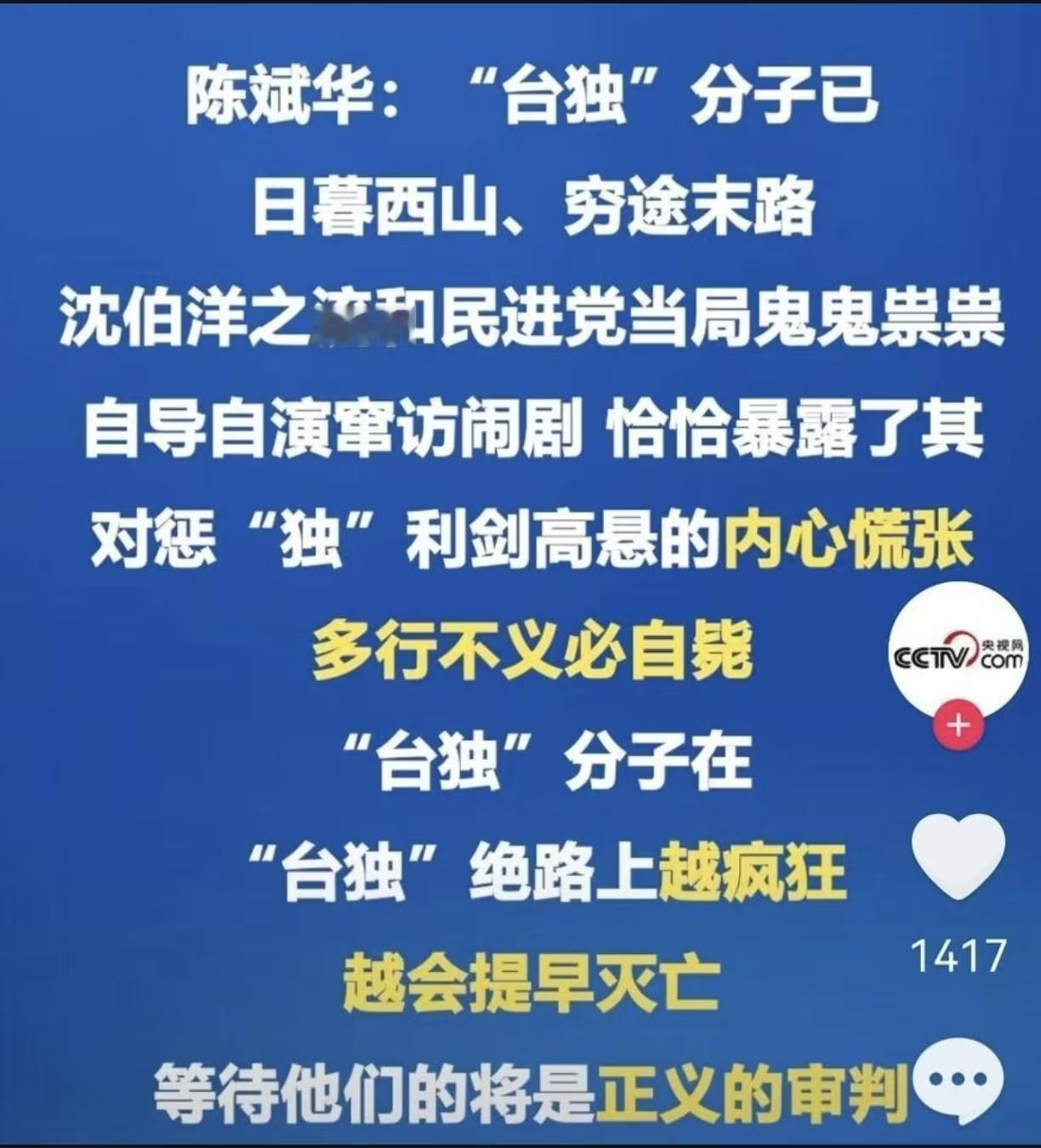 被美国和台独出卖的“小老鼠”终于怕了?环球时报消息,台湾媒体表示,被大陆立案侦查、依法终身追责,并扬言不惧“打压”的沈伯洋,内心怕得要死,尤其是很担心去新加坡。有消息披露,沈伯洋在台湾的家人,包括他的父亲、做教授的妻子,已经做好了与他“切割”的准备。之前,台当局陆委会曾经警告过沈伯洋“不要乱逃”,美国驻台协会谷立言在拜访郑丽文时,也承认了沈伯洋接受过美国中情局的“线人资金”。中天周锡玮称沈伯洋“就是大江洪流中被载沉载浮的小老鼠”,何止是一名沈伯洋吗?目前,趁着蔡英文窜访德国之际,从德国逃回到台湾的沈伯洋,躲在台湾的“仓库”里。可以这么说,在今年6月被大陆“布告”的所有台独打手帮凶,一个个地将惶惶不可终日,特别是在迫害“陆配”方面有过恶行劣迹的。 沈伯洋这家伙表面上嘴硬说什么没在怕的,其实心里早就慌得不行,台湾名嘴赖岳谦在节目里分析说重庆市公安局立案可不是闹着玩的,这意味着大陆已经建立了专门收拾台独分子的司法机制,以后沈伯洋只要跑到跟中国有引渡条约的国家,当地警察就能直接抓人送过来,这等于把他出国的大门给堵死了。这小子搞的那个黑熊学院明明就是暴力台独培训基地,打着教人防灾的幌子向青少年灌输仇中思想,甚至还夸海口要训练三百万个黑熊勇士,这种分裂国家的勾当早就被大陆警方盯得死死的。更讽刺的是他一边骂大陆一边又靠着大陆赚钱,他老爸沈土城在深圳开公司做转手贸易赚得盆满钵满,全家吃着大陆的饭却回头砸锅,岛内媒体都忍不住嘲讽这种双标行为。 现在沈伯洋最怕的就是去新加坡这种地方,毕竟大陆可以通过国际刑警组织发红色通缉令,只要他踏出国门就可能被联手抓捕,中国人民大学法学院教授程雷说得明白,证据扎实之后全球司法合作机制就会启动,这家伙躲到天涯海角都没用。别看他还敢在社交媒体上装强硬,台退役将领栗正杰直接戳穿他怕得瑟瑟发抖,连家人都在悄悄准备切割关系,毕竟谁想被终身追责的重罪牵连呢。大陆这次出手既是对沈伯洋个人的惩罚,更是杀鸡儆猴告诉所有台独分子,分裂国家的行为就算逃到国外也会被揪出来审判,那些欺负陆配打压统派的帮凶一个都跑不掉。 各位读者你们怎么看?欢迎在评论区讨论。
