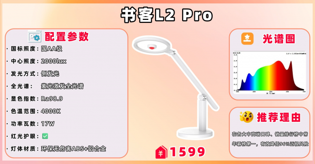 一句话推荐:有读写网课双模式,也可轻触三段式调光调色温,满足不同用光需求