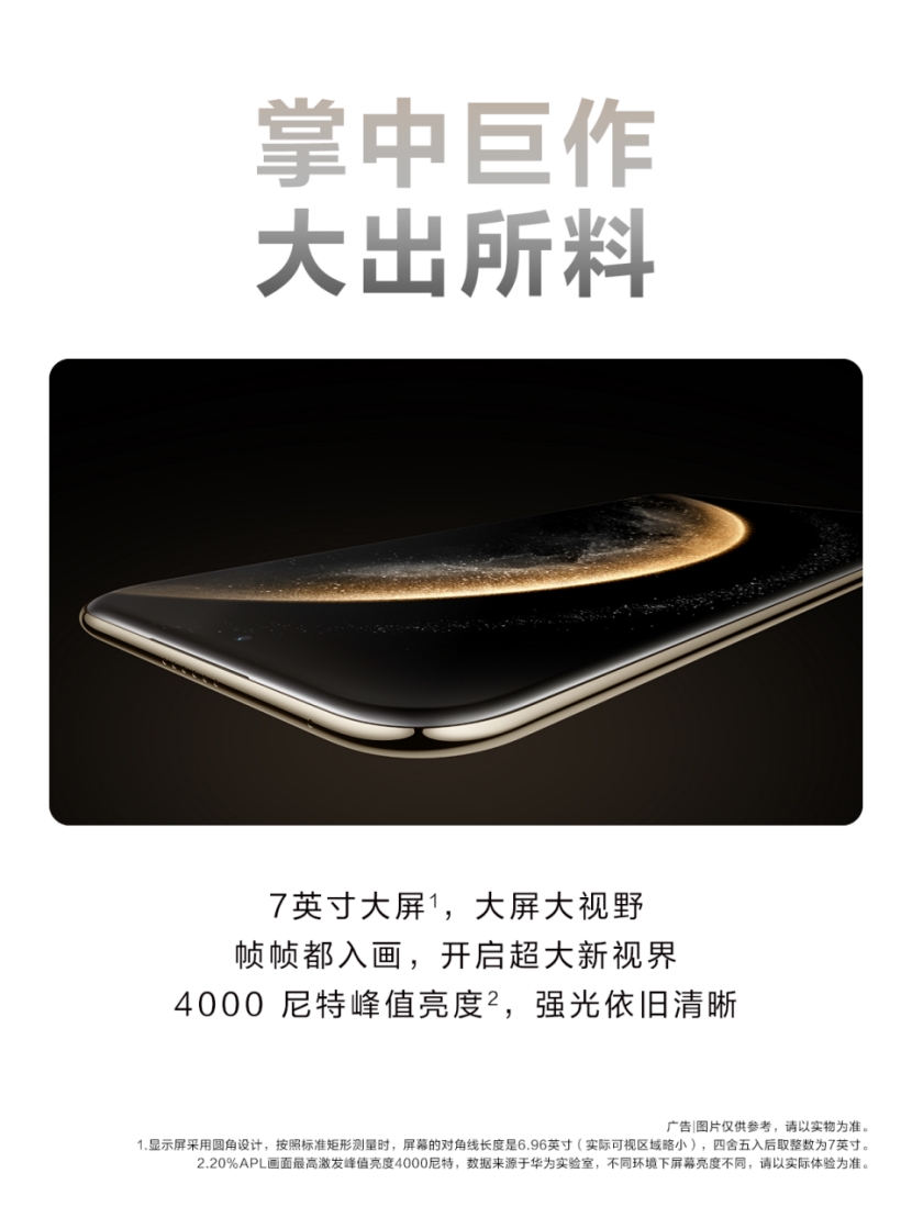 拍照时,7英寸大屏让取景细节一目了然,搭配AI辅助构图,新手也能轻松获得专业级画面;拍完后能及时确认成片质量,无需反复放大查看。值得一提的是,红枫原色镜头确保捕捉到真实色彩,而7英寸高色准大屏则能在预览与编辑时准确还原这些色彩——从食物的鲜润到风景的层次,色彩表现始终如一。此外,升级HarmonyOS 6后,新增AI人像精修、AI一键消除等功能让普通用户也能轻松优化照片,显著降低了手机摄影的专业门槛。