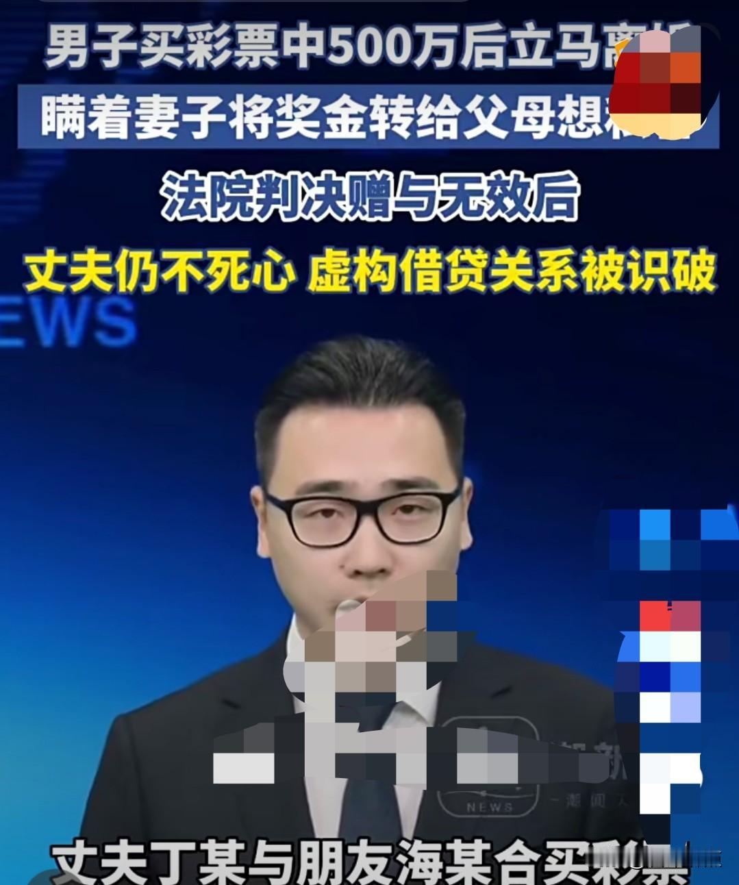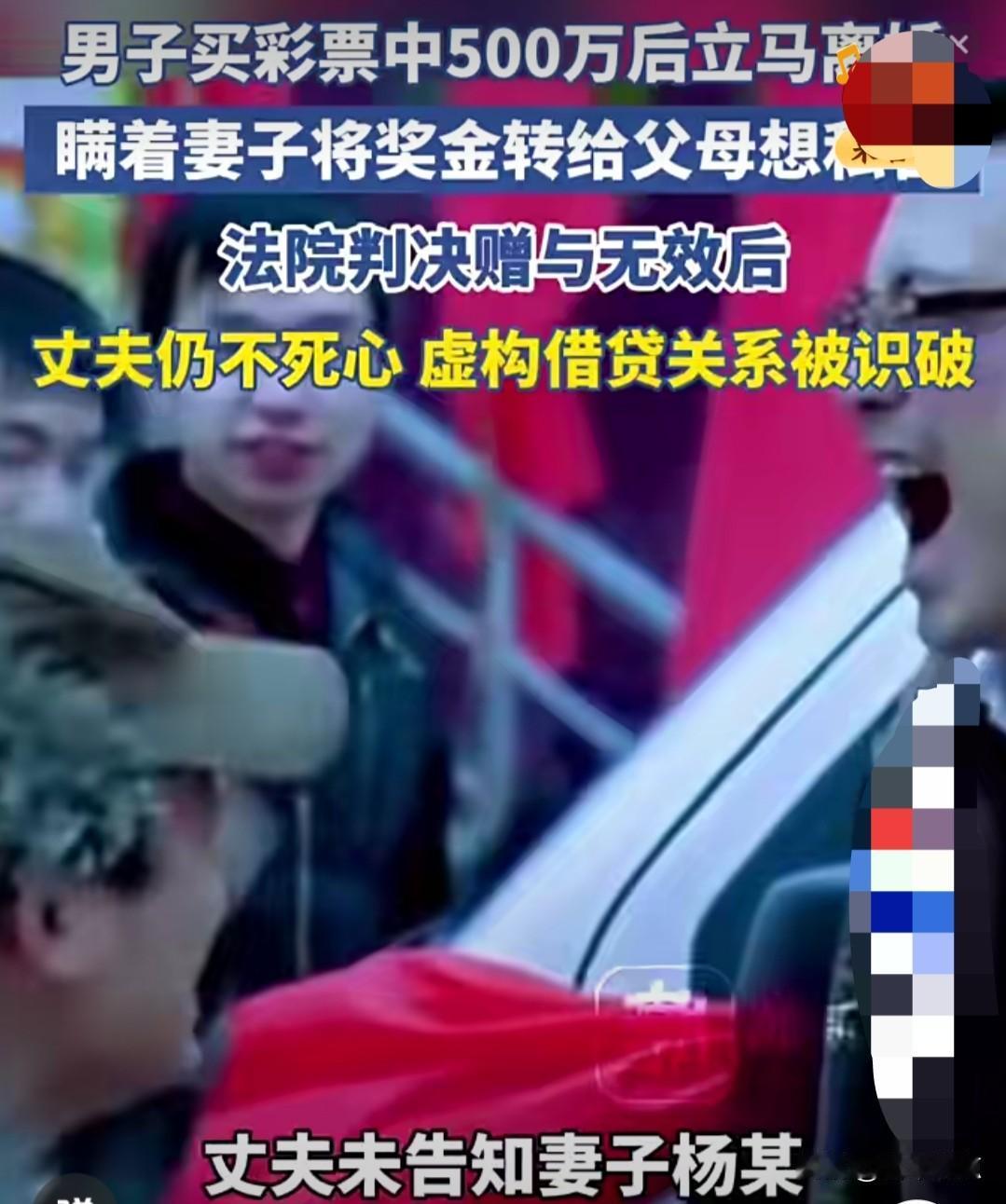 中奖500万没告诉老婆,转给父母又离婚,最后法院一句话全打回原形。 丁某中了200多万彩票,当时还是已婚状态。他没跟老婆杨某说,钱一到账就全转给了自己爸妈。过没多久,他就跟杨某办了协议离婚,表面风平浪静。 杨某后来从朋友那儿听说这事,一查银行流水就对上了。她直接起诉,要求分一半。法院查清楚后判了:转给父母那笔钱是无效赠与,得还回来。因为这钱是婚姻存续期间中的,法律上就是两口子的共同财产,不是他一个人的。 有人可能觉得“我出的钱买的彩票,中了就该是我的”。但法院不看谁掏的现金,只看时间——只要是在结婚以后中奖,不管钱从哪来、票谁买的、奖谁兑的,都算共同财产。隐瞒本身就已经踩线了。 更没想到的是,判决下来后,丁某立马和一起买彩票的朋友海某凑了个“借款合同”,说那200万是借的,还拿着转账记录去法院起诉要“还债”。结果立案窗口法官一眼看出问题:没借条、没利息、没催款,连聊天记录都没有,前脚刚判完离婚财产,后脚就冒出个债。当场没立案,还做了风险提示。 这事其实挺典型的。很多人以为离婚手续办完就彻底分清了,其实不是。只要发现对方藏了财产,哪怕离完婚两年内,照样可以重新起诉分。关键是要有线索,比如大额异常转账、突然买房买车、或者像这次一样,彩票中心兑奖记录能调出来。 杨某赢了,不是因为她多聪明,而是她敢去查、愿意走法律程序。而丁某输的也不只是钱,还有信用。法院最后没罚他,但他写了承诺书,还主动撤了那个假官司。 虚假诉讼听着远,其实就藏在一次随手转账、一份补签的合同里。但法官现在不会等开庭才查,立案时就会盯资金来源、时间逻辑、人物关系。你糊弄程序,程序就给你上一课。 现在彩票中心兑奖都要实名,银行流水能查五年,微信支付宝也有迹可循。想靠“悄悄转走”躲过去,真没那么容易。 法律不阻止你发财,但也不会让你把家当当提款机。 中奖不是免死金牌,结婚证才是财产说明书。