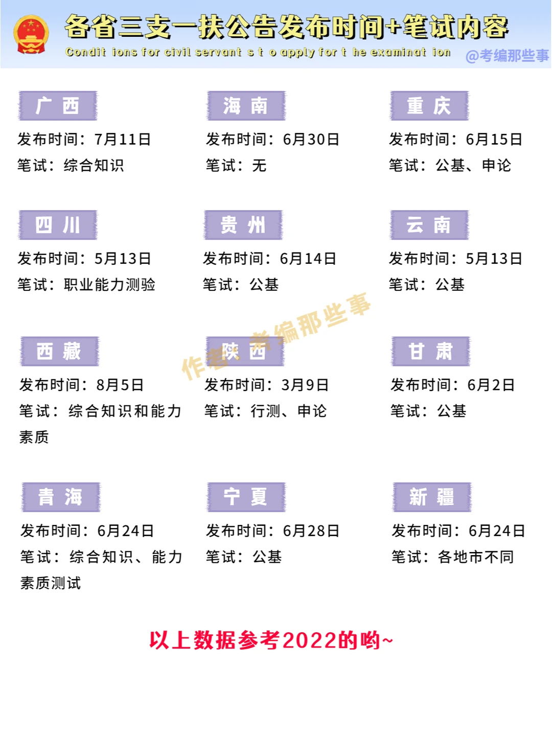 🔥2023各省三支一扶发布时间及笔试内容!