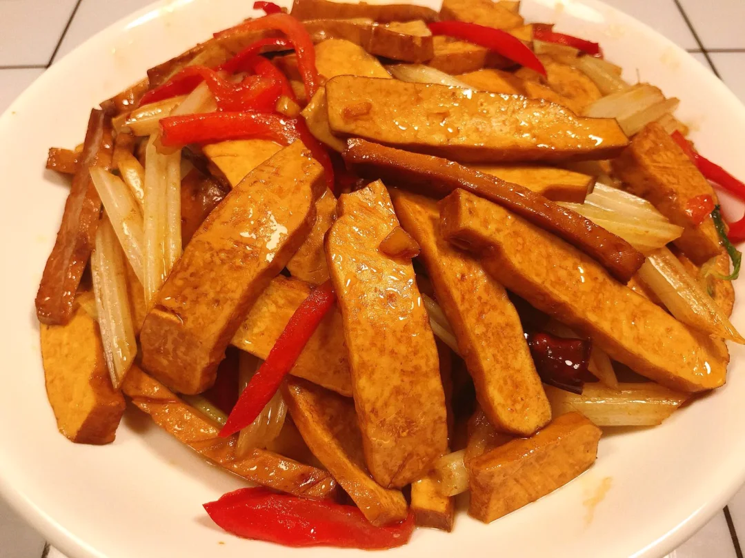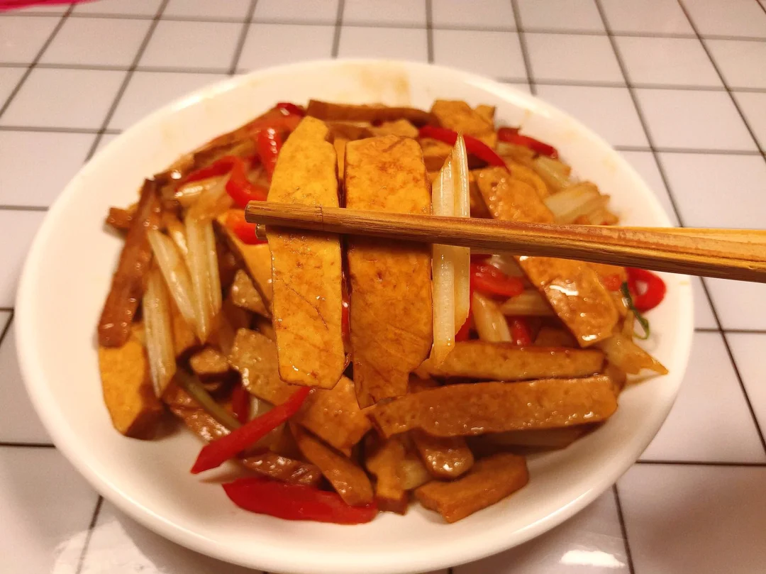 [赞R]食材:豆干、香芹、红椒、蒜末、干辣椒