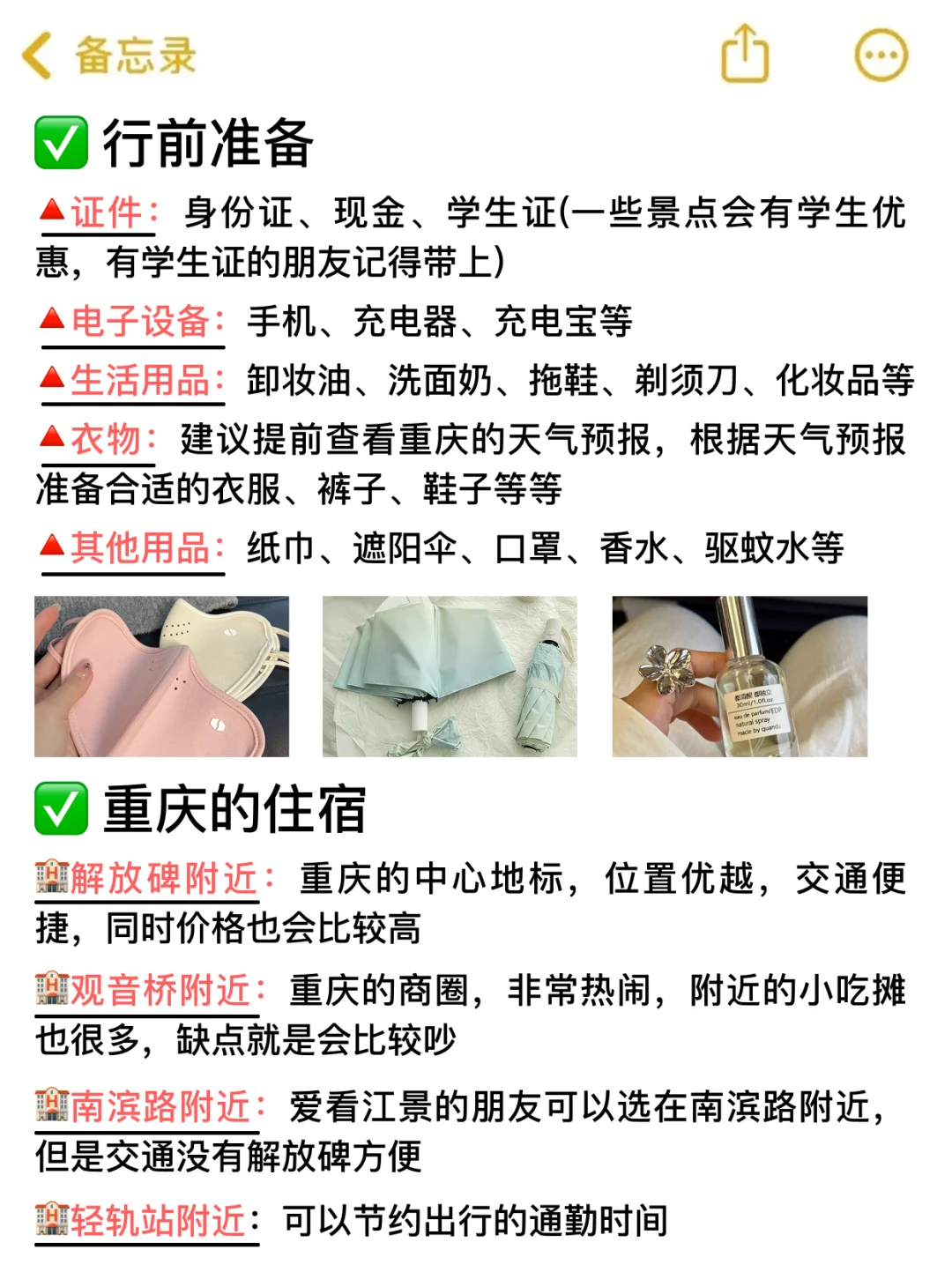 3⃣衣物:建议出行前提前查看重庆的天气预报,根据天气预报准备合适的衣服、裤子、鞋子