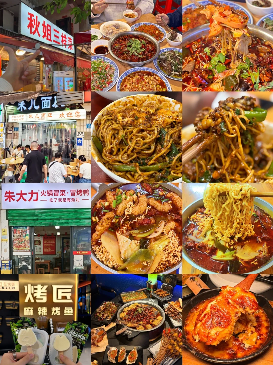 🥐朱大力冒烤鸭:重庆巷子里的一家苍蝇小馆,鸭肉很嫩,可以搭配泡面一起吃,很上头!
