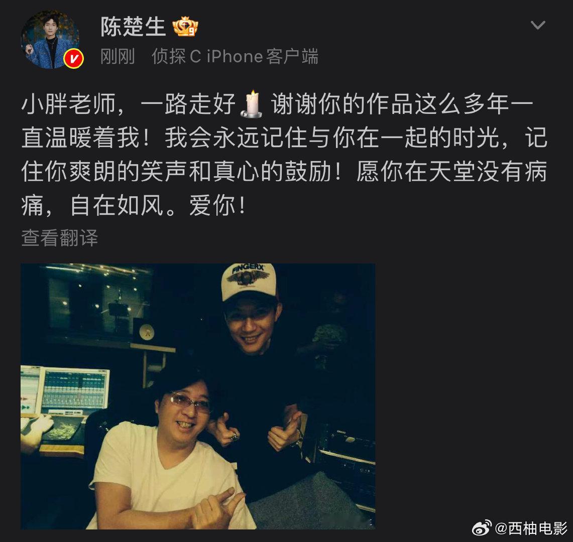 陈楚生发合照悼念袁惟仁,愿你在天堂没有病痛,自在如风!袁惟仁发病的前一天他们还