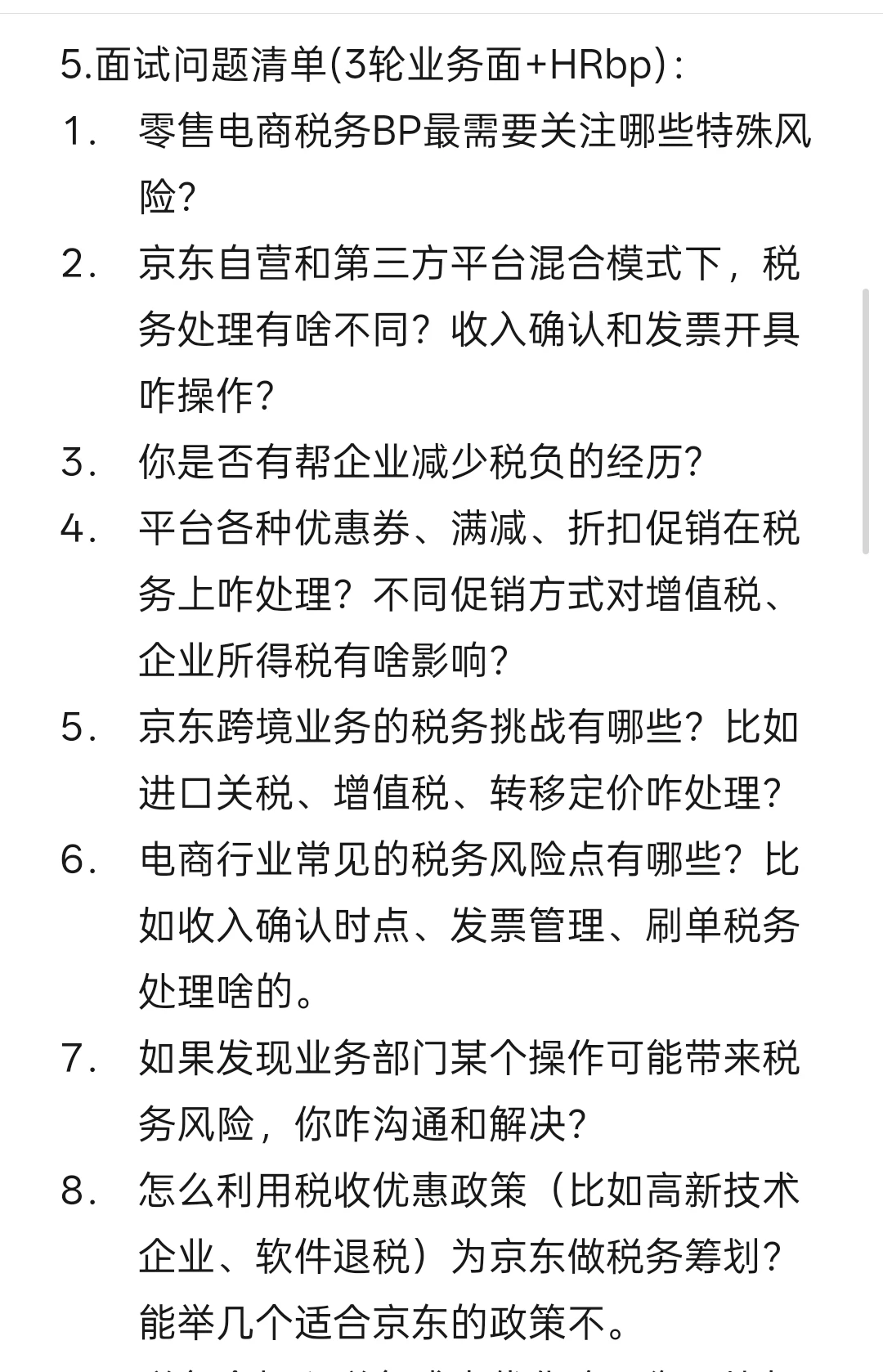 5.面试问题清单(3轮业务面+HRbp):