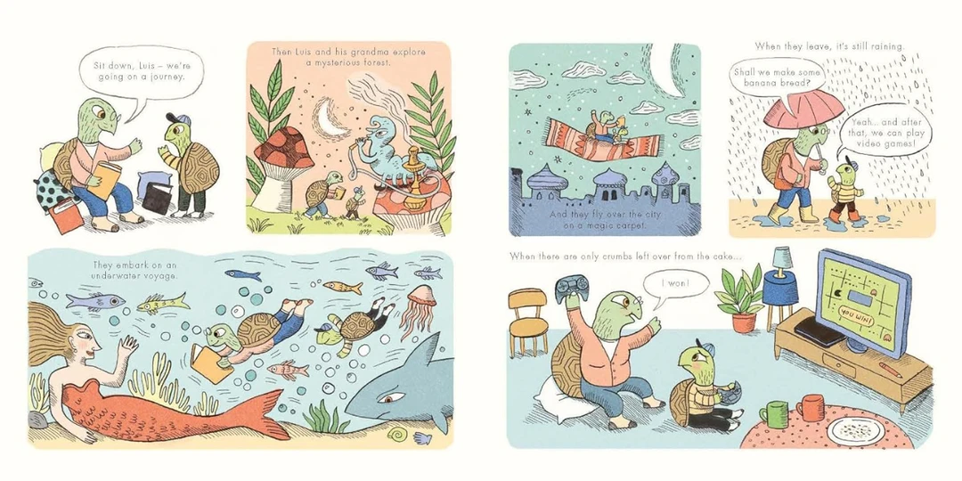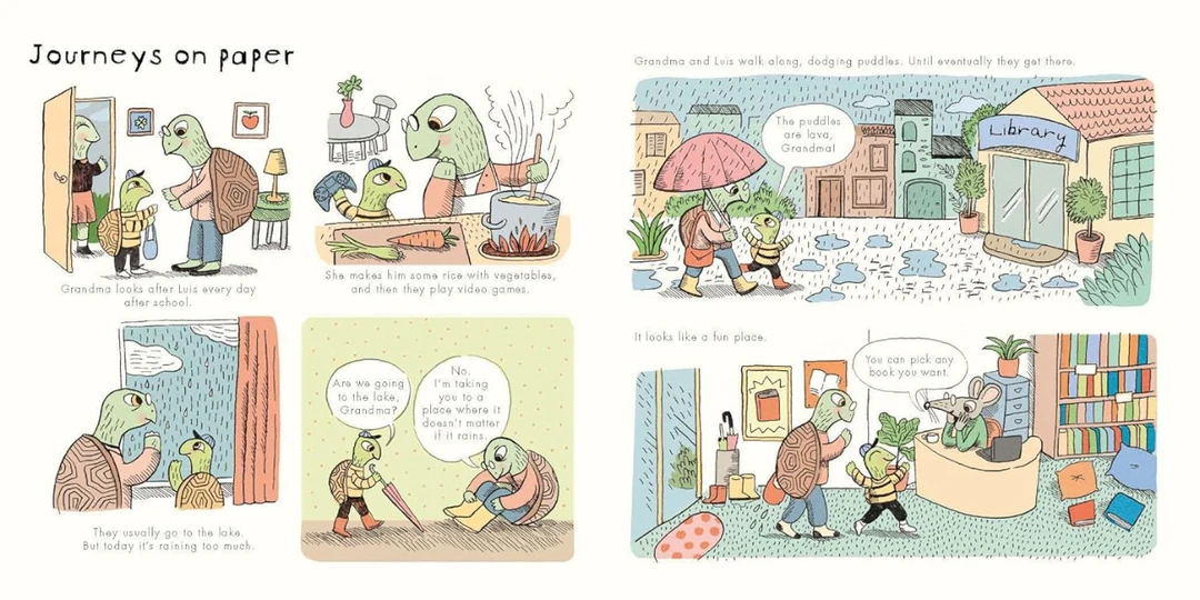 [种草R]《纸上的旅程》(Journeys on Paper):乌龟奶奶和路易斯(Luis)在一个下雨的午后前往图书馆,在那里通过书籍展开了奇妙的冒险之旅。