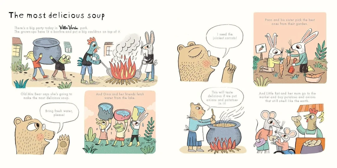 [种草R]《最美味的汤》(The Most Delicious Soup):整个村庄的居民们齐心协力准备了一顿美味的汤,之后一起聚会庆祝,并且还一起打扫清理。