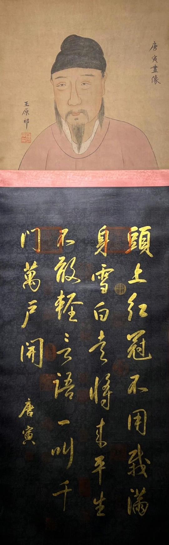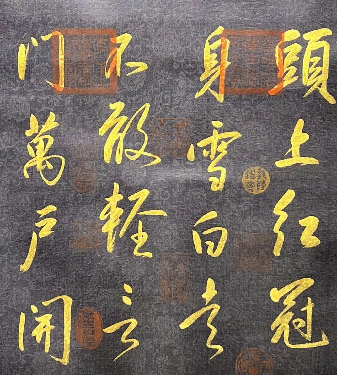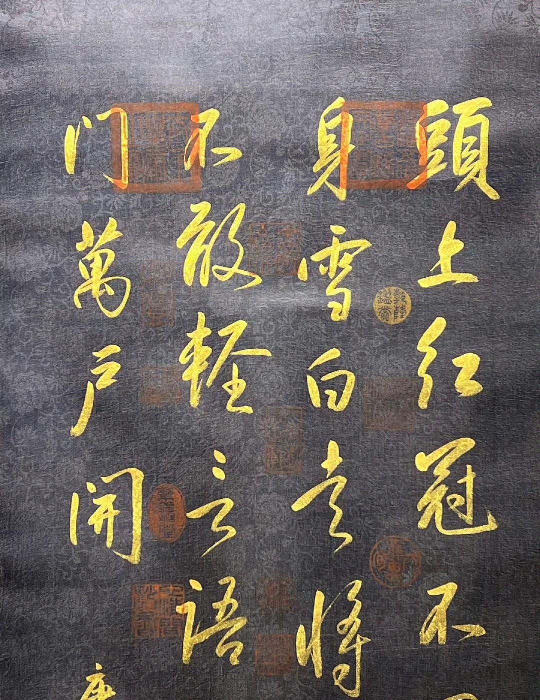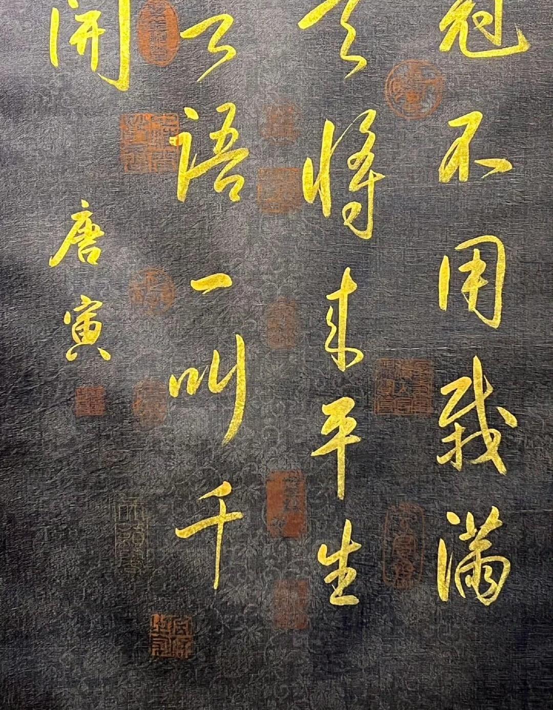 触摸五百年前那位才子的滚烫灵魂。 这卷明代唐寅绢本金字书法,绢本莹润,金字流光,