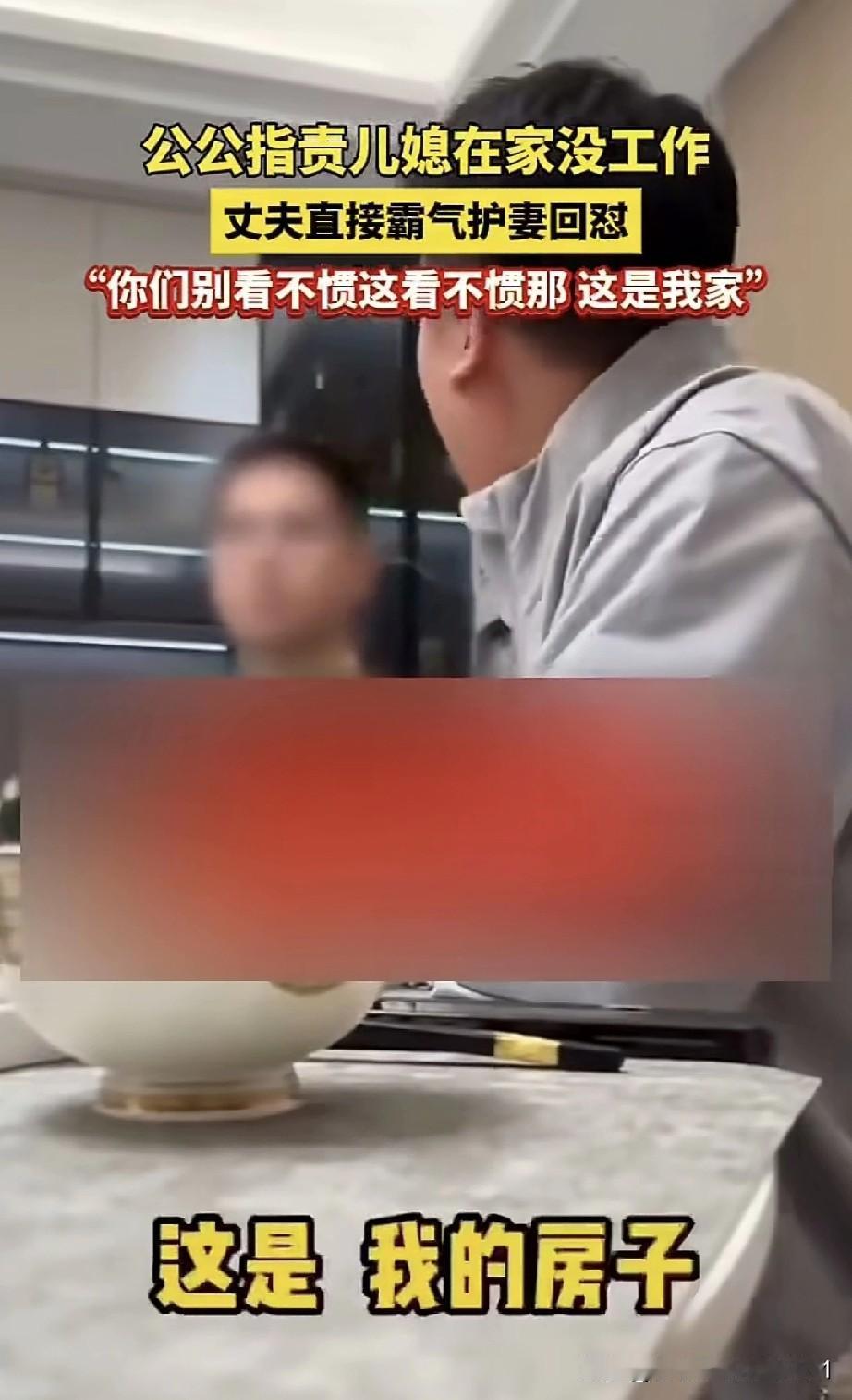 吃晚饭时,公公指责儿媳妇没工作,唠叨了几句。没想到这惹得老公不满,老公直接霸气回怼:“别这看不惯那看不惯的,这是我家。你们吃完饭往那一坐,碗是谁刷的?衣服是谁洗的?非得找点事做才叫有事做吗?” 他还质问弟弟:“你大学毕业后就一直窝在家里,这是我的家、我的房子,她是你嫂子。”原来,男子弟弟大学毕业后一直住在哥哥嫂子家。老公接着说:“你们这也看不惯那也看不惯,难不成你们自己没家吗?只听说过婆婆多事儿,没听过公公这么多事儿的。自己小儿子大学毕业在家窝着不找工作,不觉得有问题;儿媳妇在家洗衣做饭,就觉得人家清闲。这是想让大儿子他们养他,顺便还养小儿子?” 幸亏大儿子头脑清醒,不然怕是还得包办小儿子的婚姻。我觉得男子做得很对,这么不懂事的一大家子,怎么会有这么明事理的丈夫?敢这么硬气帮老婆的男人不多,不然也不会有那么多离婚的。公公婆婆欺负儿媳妇时,忘了儿子的存在,儿媳妇是为丈夫才来到这个家,不是因为公公婆婆。 最让人讨厌的,一种是吃着你的喝着你的,还嫌这不好喝那不好吃;另一种是享受完了还满世界炫耀。 对此,大家怎么看?